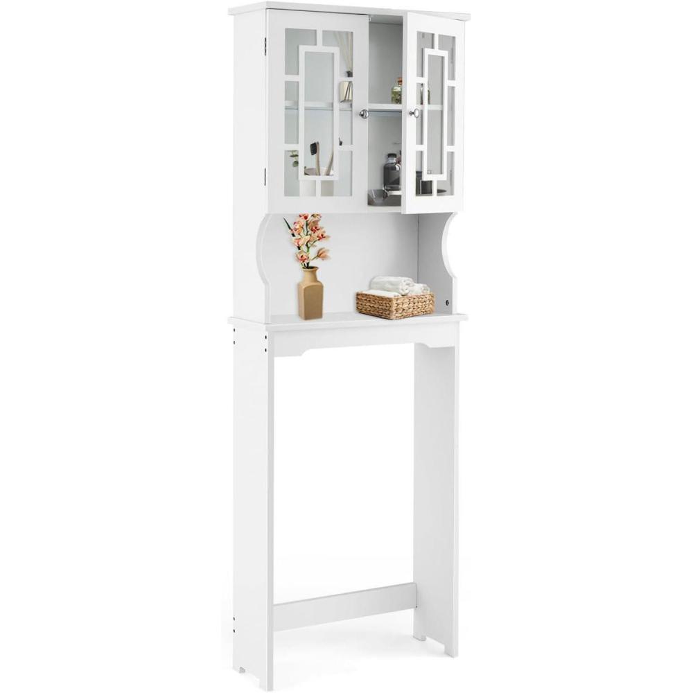 imageGRAFFY Over The Toilet Storage Cabinet Bathroom Space Saver Stands with Adjustable Shelf Open Storage Shelf ampamp Double Doors Freestanding Toilet Organizer Wooden Above Toilet Rack White WhiteWhite