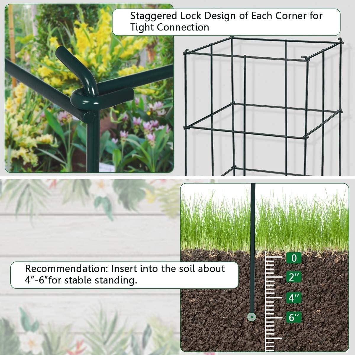 Staggered Lock Design for Various Combination: With the staggered lock design, each piece of the 4 tomato cages can be connected tightly to prevent the cages from falling apart. What’s more, it’s possible to rearrange it into half-folded, tiled and irregular form according to your need to offer the best growing condition.