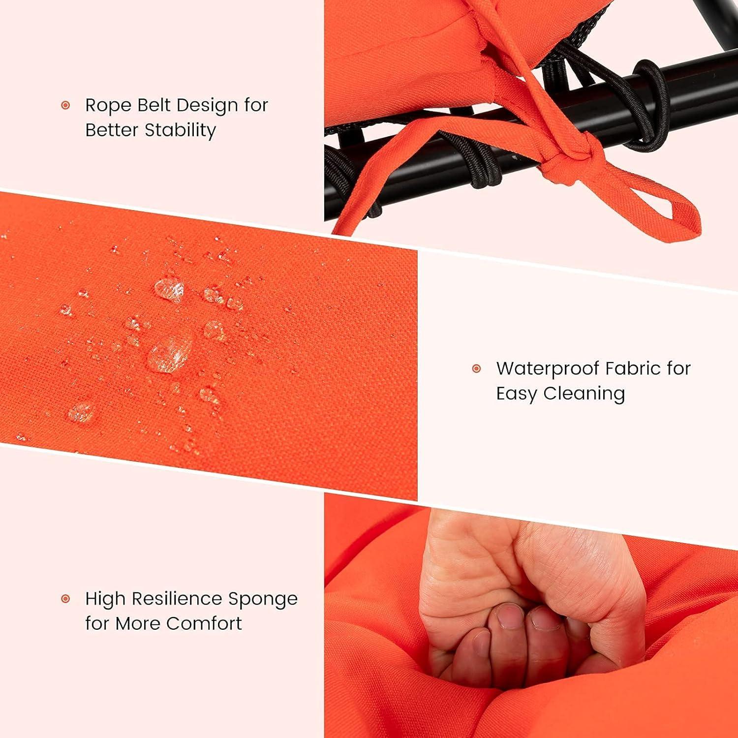 GRAFFY Patio Chaise Lounge Cushion, 72″ x 22″ x 4″ Lounge Chair Cushion, Tufted Lounger Cushion with 4 String Ties, Thickened Oil-Proof, for Terrace, Poolside Outdoor Indoor (Grey)(Red+orange)