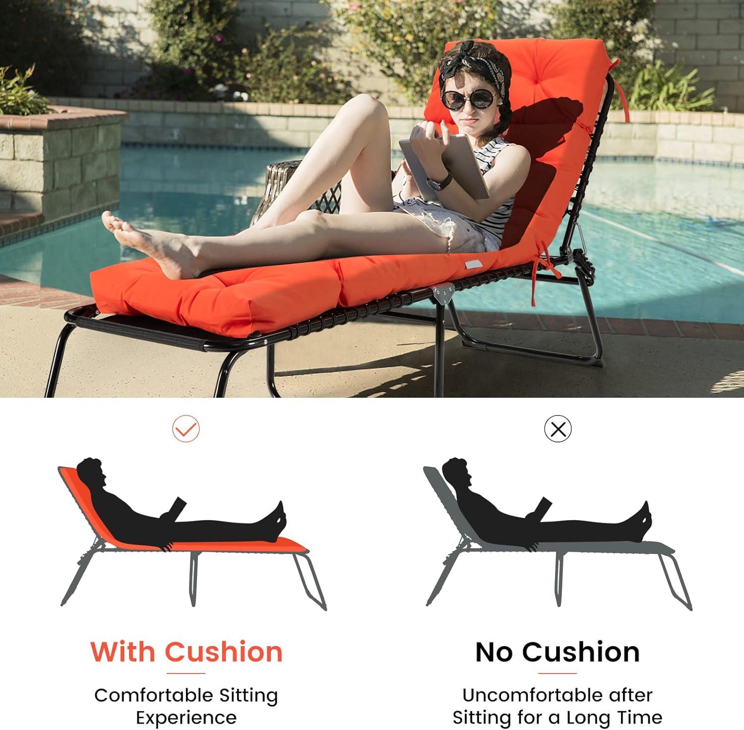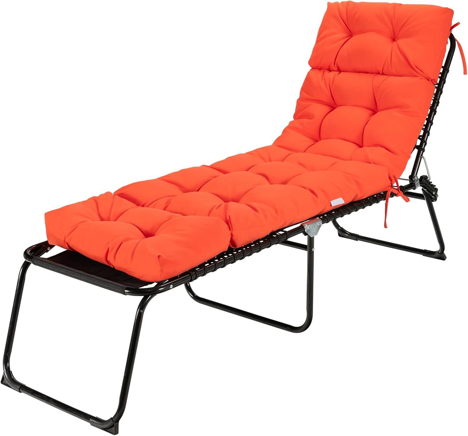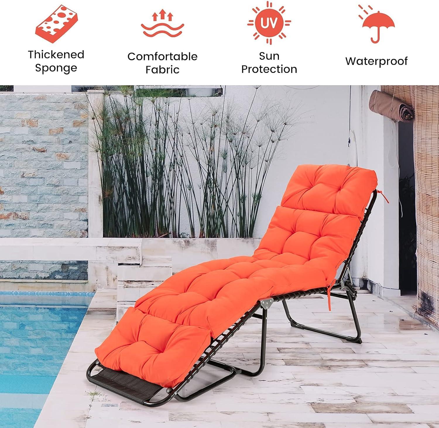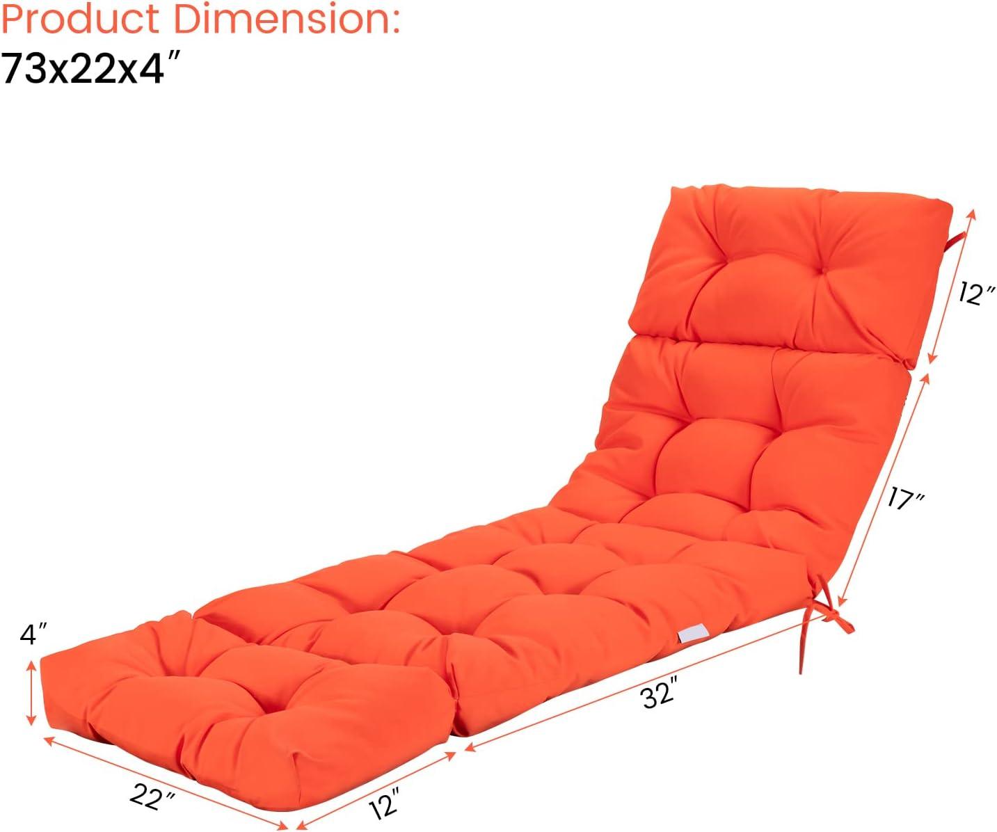 GRAFFY Patio Chaise Lounge Cushion, 72" x 22" x 4" Lounge Chair Cushion, Tufted Lounger Cushion with 4 String Ties, Thickened Oil-Proof, for Terrace, Poolside Outdoor Indoor (Grey)(Orange)