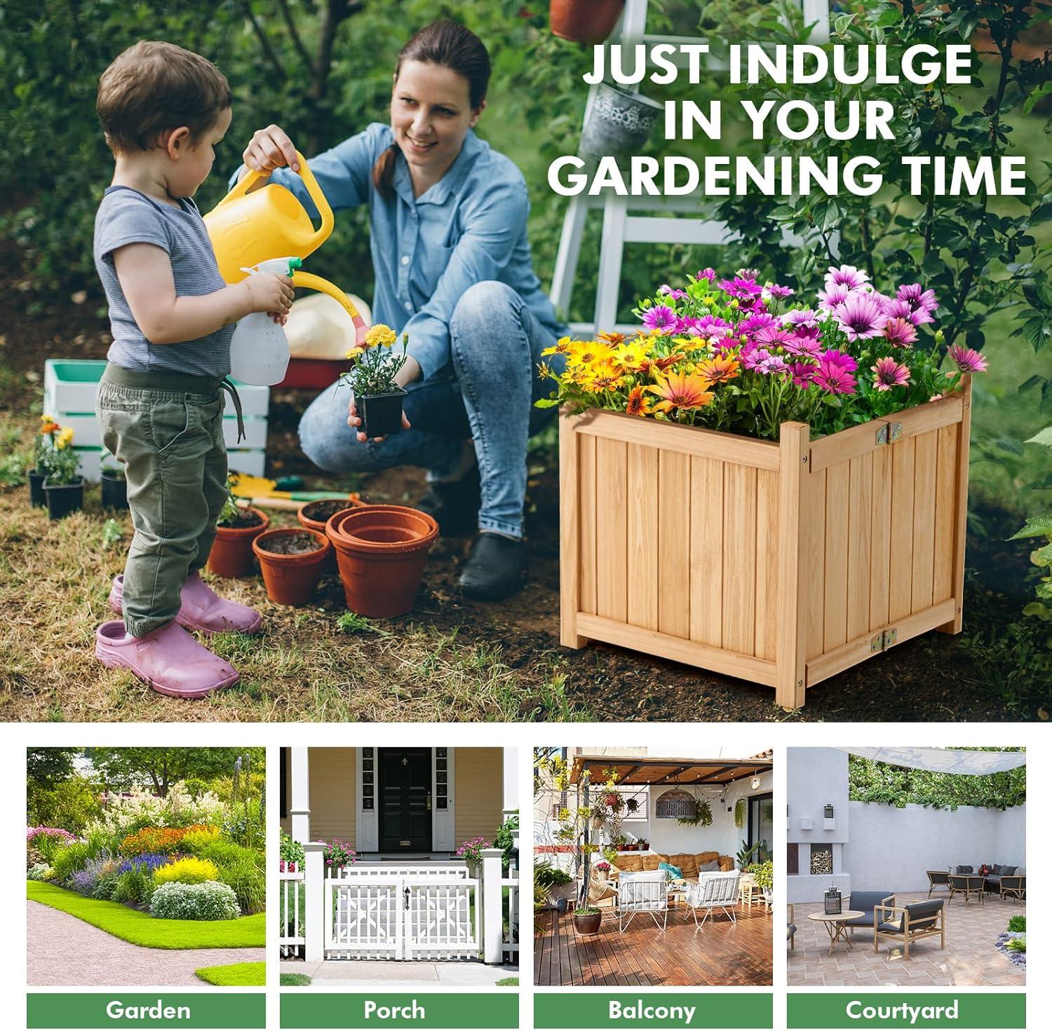 GRAFFY Raised Garden Bed, Folding Wood Planter Box w/Removable Bottom & Drainage, Elevated Planter for Flower Herb Vegetable Fruit, Plant Container for Grass Lawn Patio Backyard (27.5"D x 12"W x 10"H)(15"D x 15"W x 14"H)