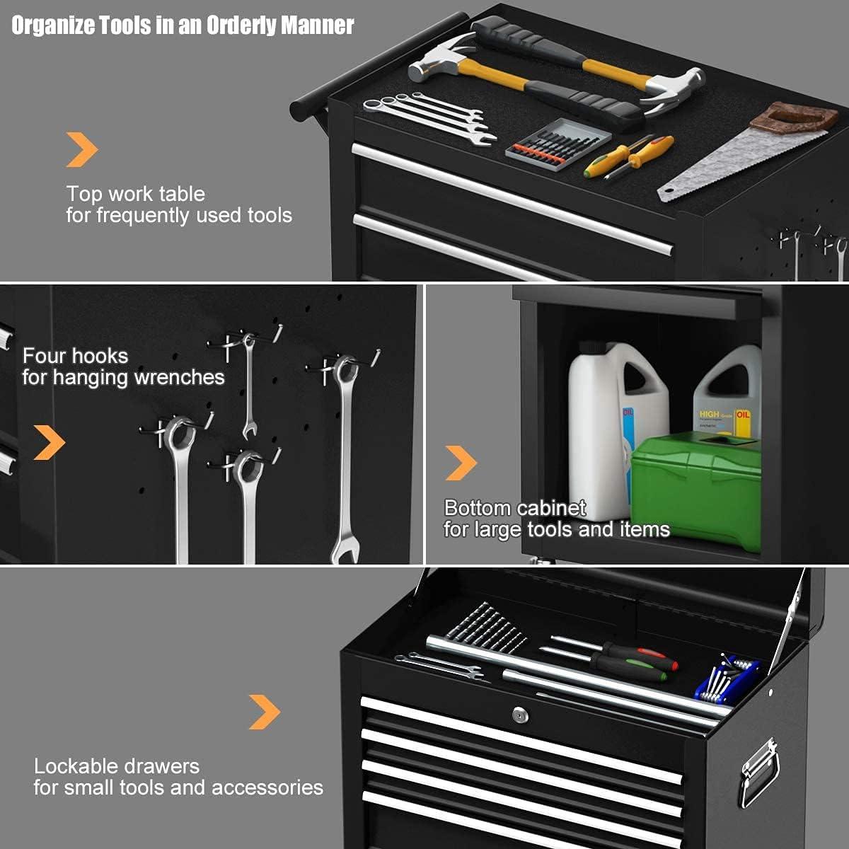 🛠️【Smooth Guide & 4 Hooks】The smooth steel ball guide allows you to slide the drawer freely, which is convenient for you to get your tools. The lower case is set with 4 practical hooks that you can use to hang wrenches or other tools.