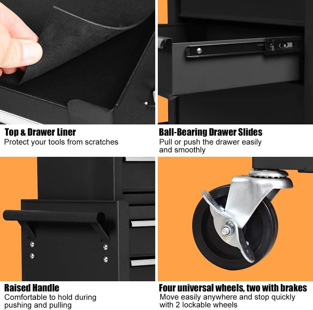 🛠️【Easy to Move】4 universal wheels that can rotate 360 degrees make it easy to move the cabinet in any direction with very low noise. Two of the front wheels with locking function can increase the stability of the cabinet. The side handrails help you control the direction of the tool cabinet.