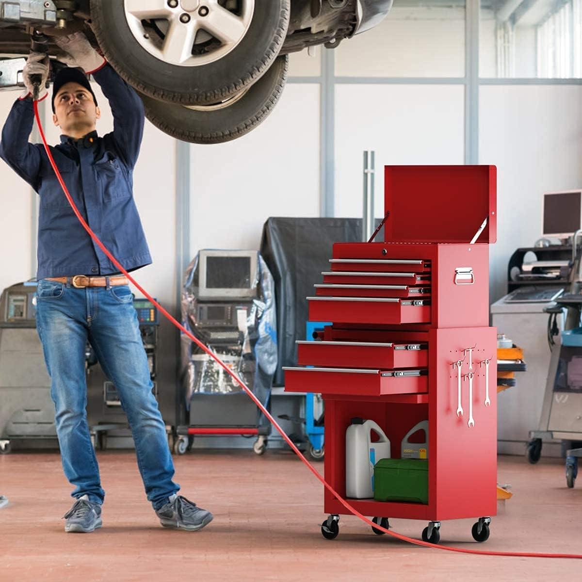 GRAFFY Rolling Tool Chest w/6 Drawers,Metal Tool Storage Cabinet w/4 Hooks & Universal Casters, Toolbox Organizer w/Lock for Garage,Warehouse (Black)(Red)