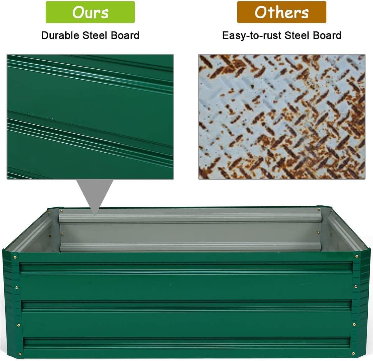 With plenty of planting space, this raised garden bed allows you to grow fruits, vegetables, flowers, plants and more. The important thing is that the raised garden bed has an open bottom design, which allows the roots of the plants to better absorb nutrients and water, and discharge excess water. This garden bed is made of thick steel and will not deform easily after long time use. Each corner is reinforced by screws to provide strong stability. You can put it in grass, lawn, patio, backyard, etc.