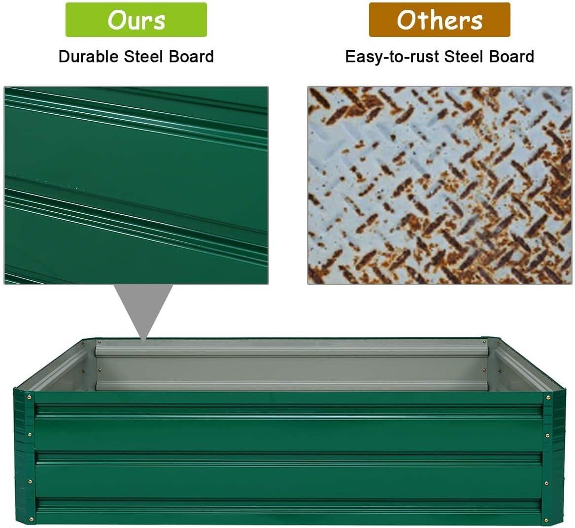 Strong and Durable Material: Our raised garden bed is composed of thick steel structure, which is durable and not easily deformed. In addition, each corner is tightly fixed by 8 screws, and the sturdy and durable structure can be used outdoors for a long time.