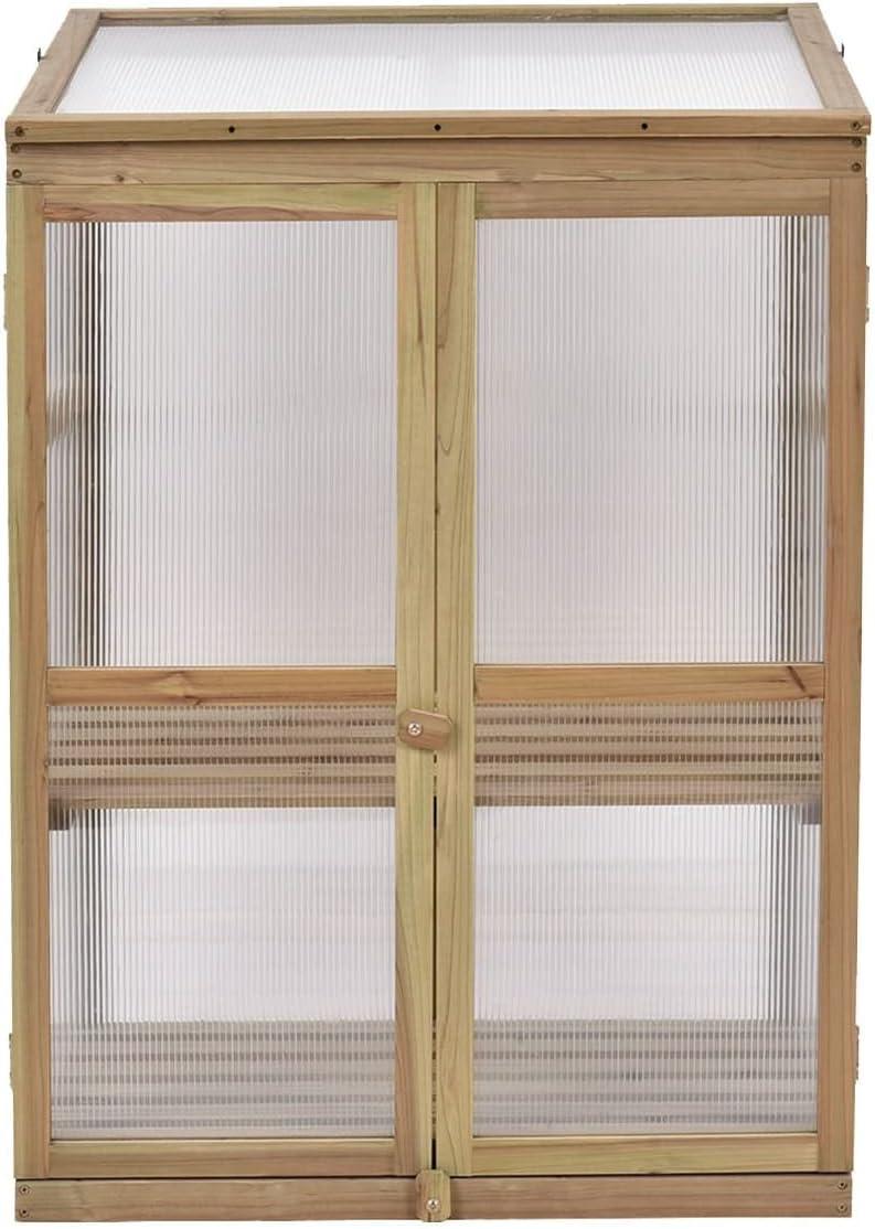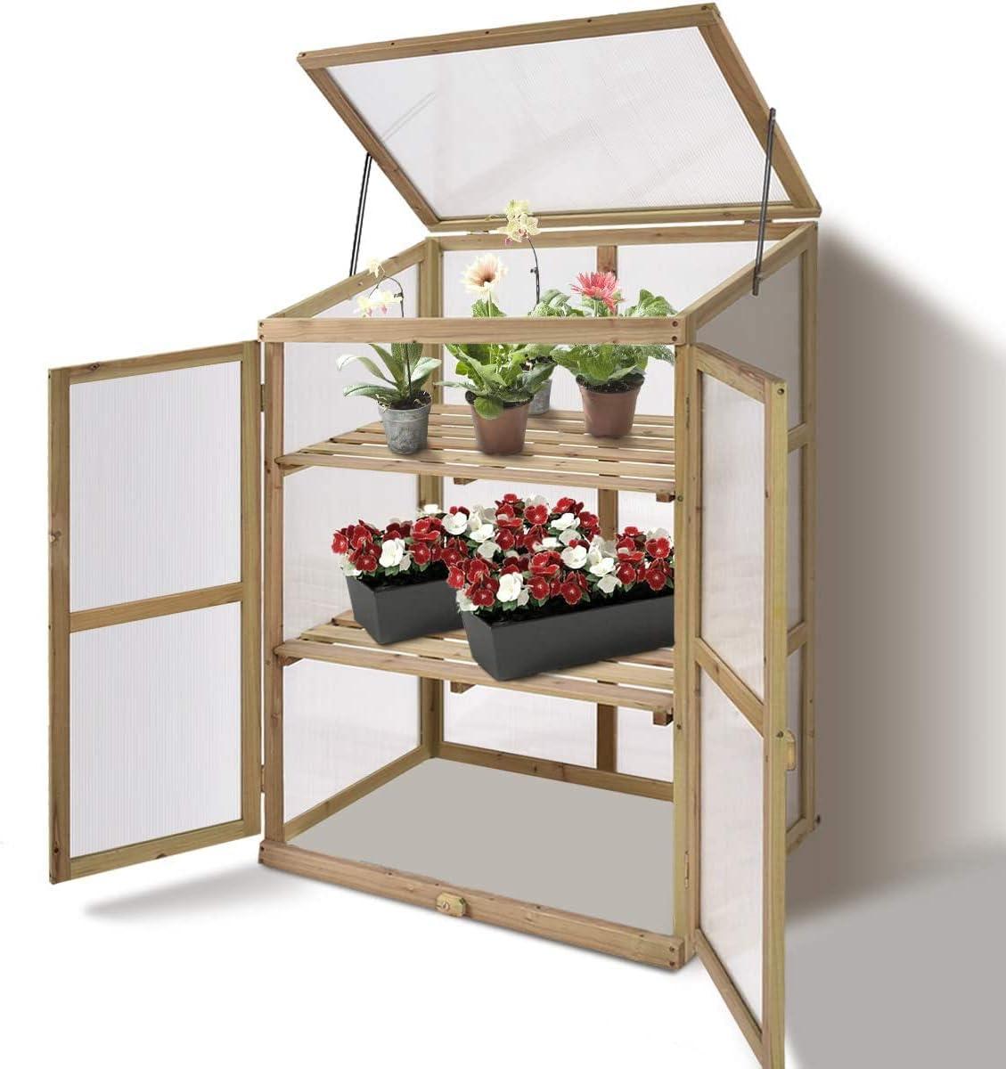GRAFFY Wooden Garden Greenhouse, Portable Cold Frame, Mini Greenhouse Kit with Foldable Top and Side Doors, Raised Bed Protective Planter with Double Shelves, Greenhouses for Porch Backyard Balcony
