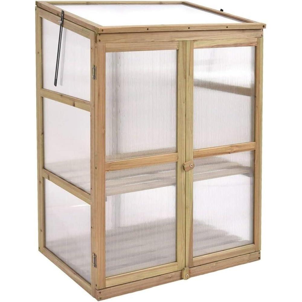 imageGRAFFY Wooden Garden Greenhouse Portable Cold Frame Mini Greenhouse Kit with Foldable Top and Side Doors Raised Bed Protective Planter with Double Shelves Greenhouses for Porch Backyard Balcony