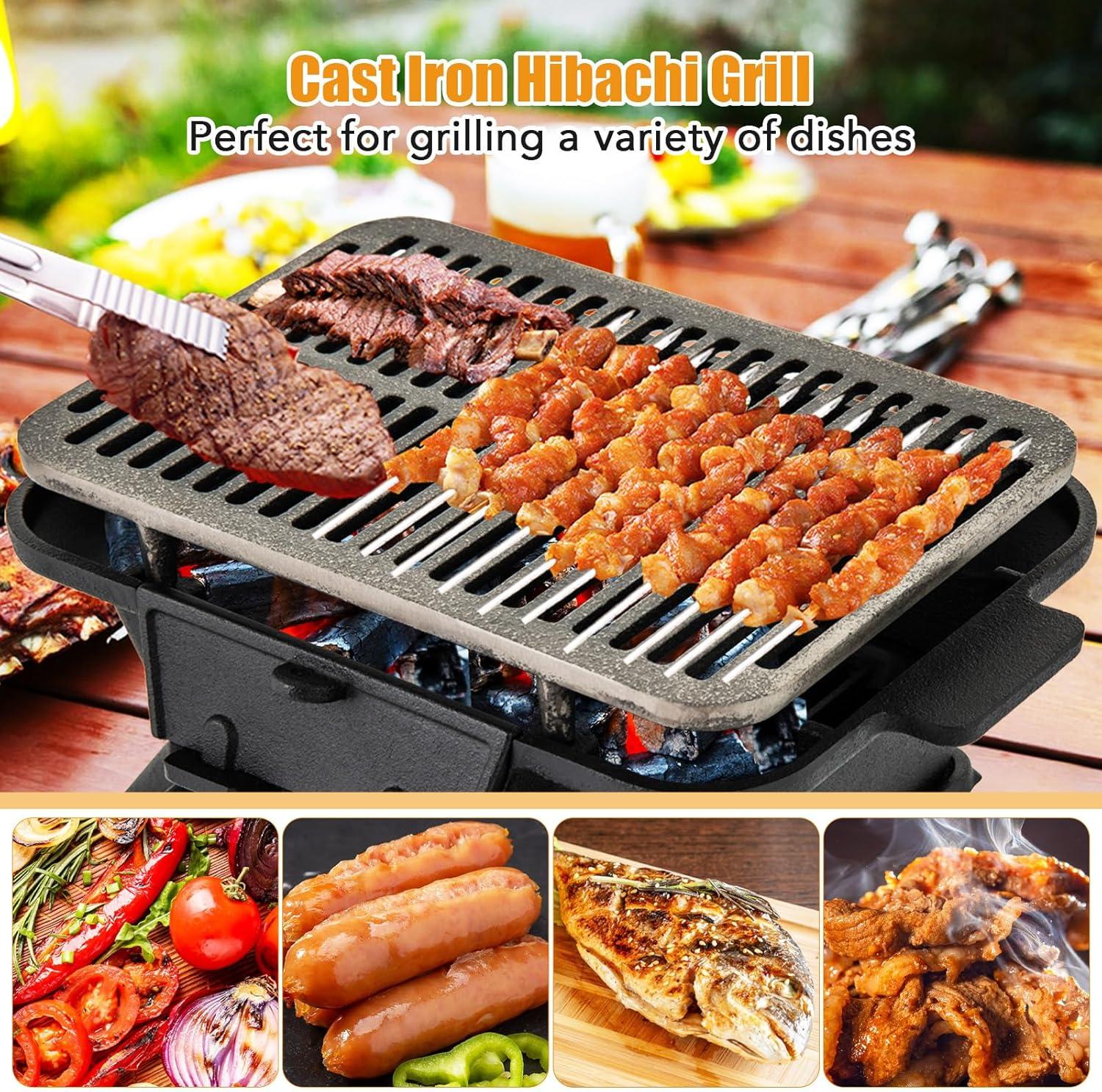 Hibachi Grill, Portable Cast Iron Charcoal Grill with Air Regulating Door & Fire Gate, Grate Lifter, Small Tabletop Japanese Yakitori Grill for Outdoor Camping, Picnic, Party (Rectangle)(Rectangle)