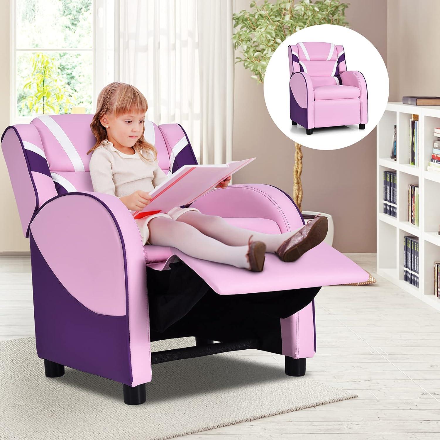 The recliner boasts a breathable leather exterior paired with a sturdy solid wood frame, ensuring durability and the ability to support up to 155 pounds. The chair sofa is generously padded with soft foam, providing a cozy seating experience. Its backrest is adjustable from 90° to 150°, while the extending footrest allows kids to read, watching and so on. Thoughtfully designed with 2 side pockets, it offers ample storage for children's favorite books and snacks. Ergonomically crafted, the gaming chair features smooth, round armrests and a high backrest ensuring kids can fully relax. This stylish and oversized children's sofa blends into bedrooms, nurseries, or living rooms, making it an excellent gift choice.