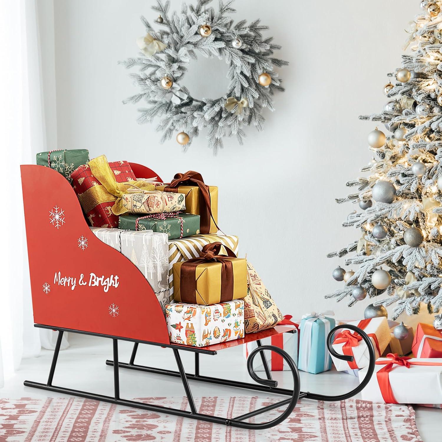 Park this 29” ruby-red Santa sleigh basket anywhere and—bam—instant North-Pole vibes. The swooping arched frame and vintage holiday cut-outs catch every twinkle light. Pile it high with presents, cookie platters, or an entire roll of garland—the steel bones won’t flinch, no matter how many “just one more” gifts you cram inside.