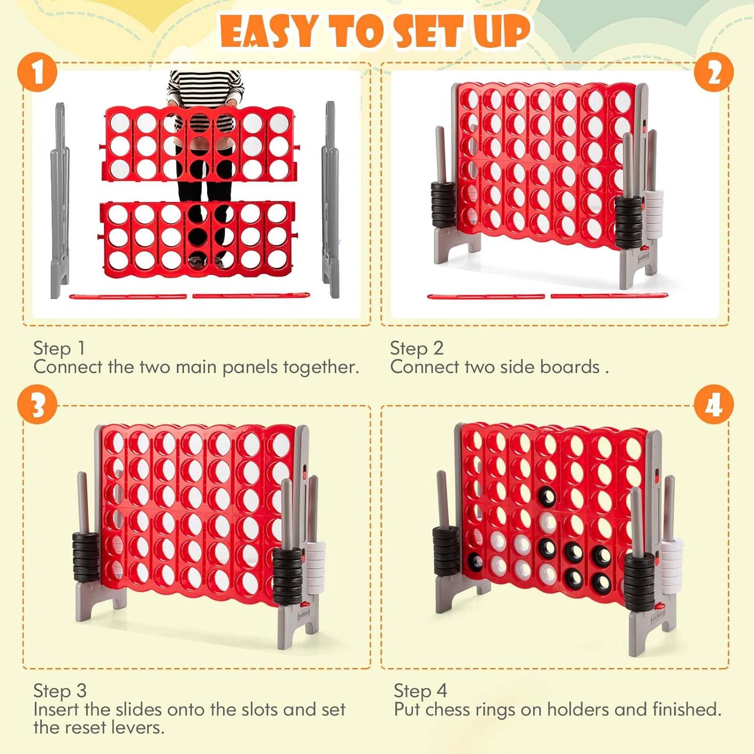 Built for Durability & Safety:Constructed from High Density Polyethylene (HDPE) materials and PP materials, this large 4 in a row set is built to withstand hours of play, both indoors and outdoors. The materials are strong and durable, while the smooth edges ensure safety for all players, even during intense matches. Enjoy worry-free playtime for everyone!