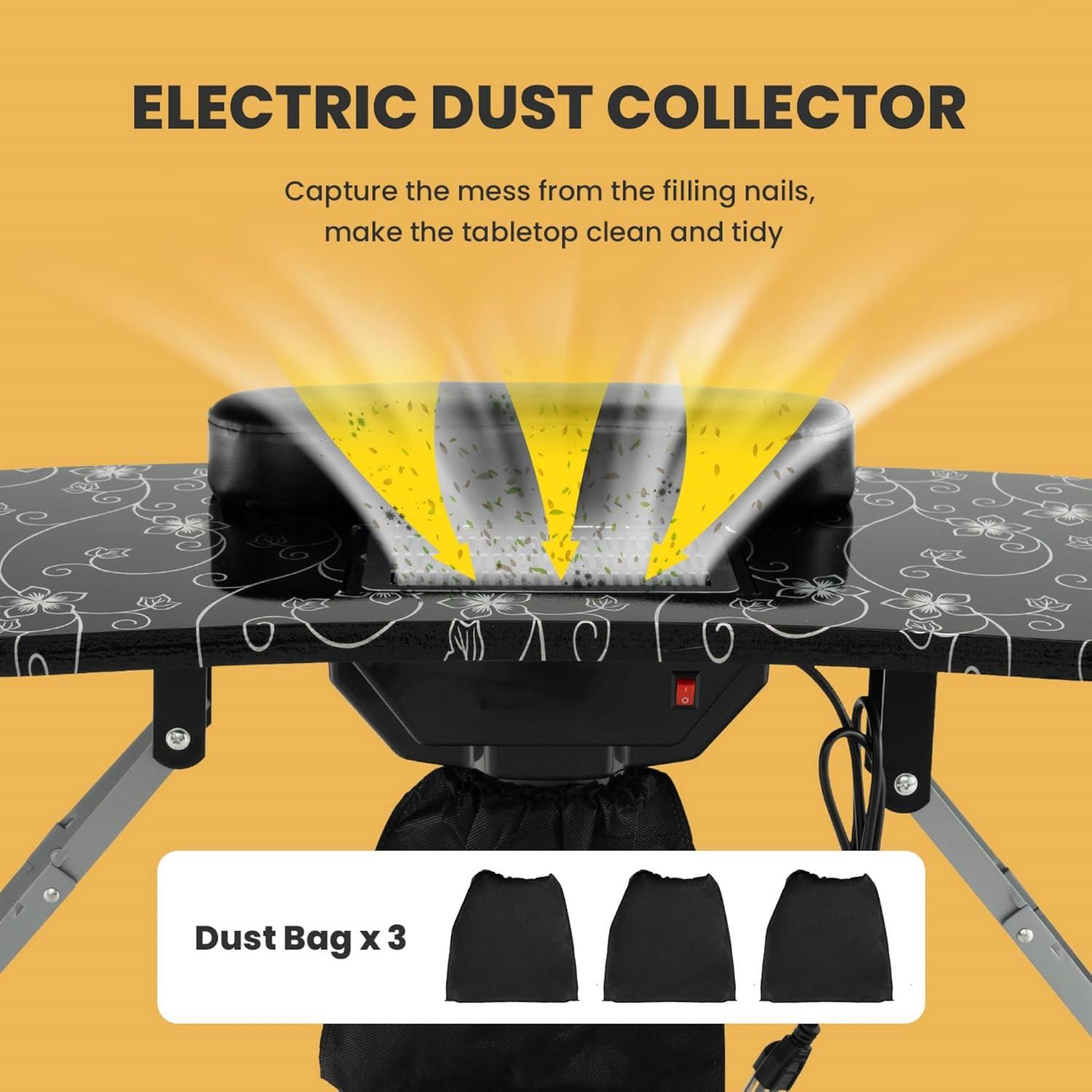 Efficient Collection with Convenient Bags: This travel nail desk features an integrated electric residue collector that effectively captures residue and minimizes mess. It comes with 3 residue bags for easy disposal and maintenance, ensuring a cleaner work environment