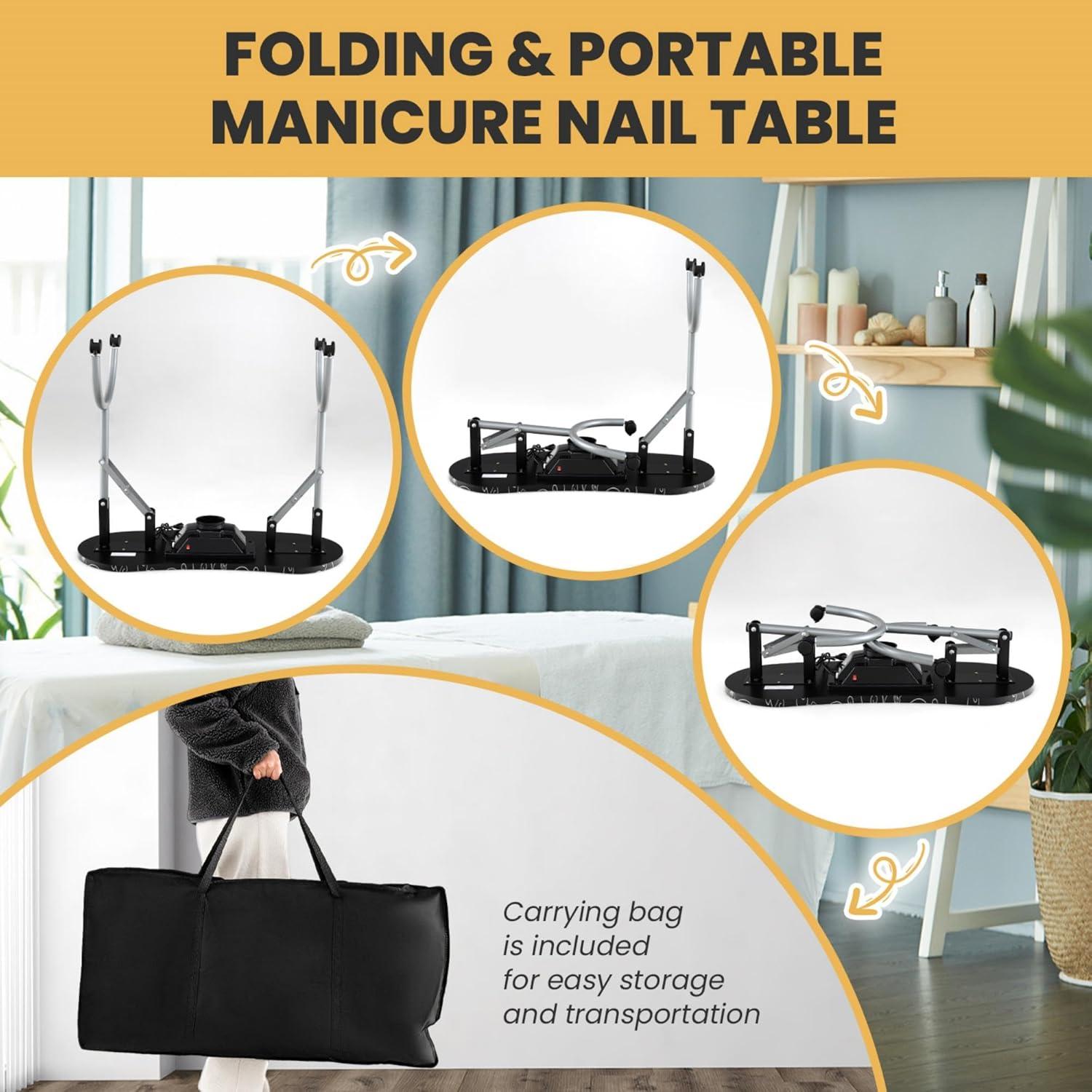 Foldable Design for Easy Storage: Our folding nail table folds into a compact size for effortless storage and transport. The included carry bag is designed to fit the folded table perfectly, making it convenient to carry wherever needed