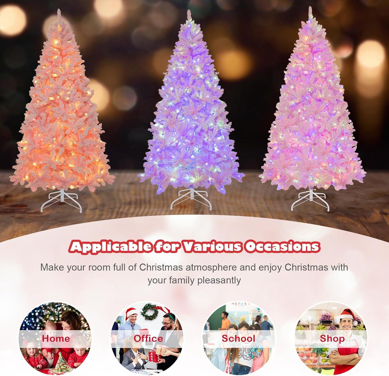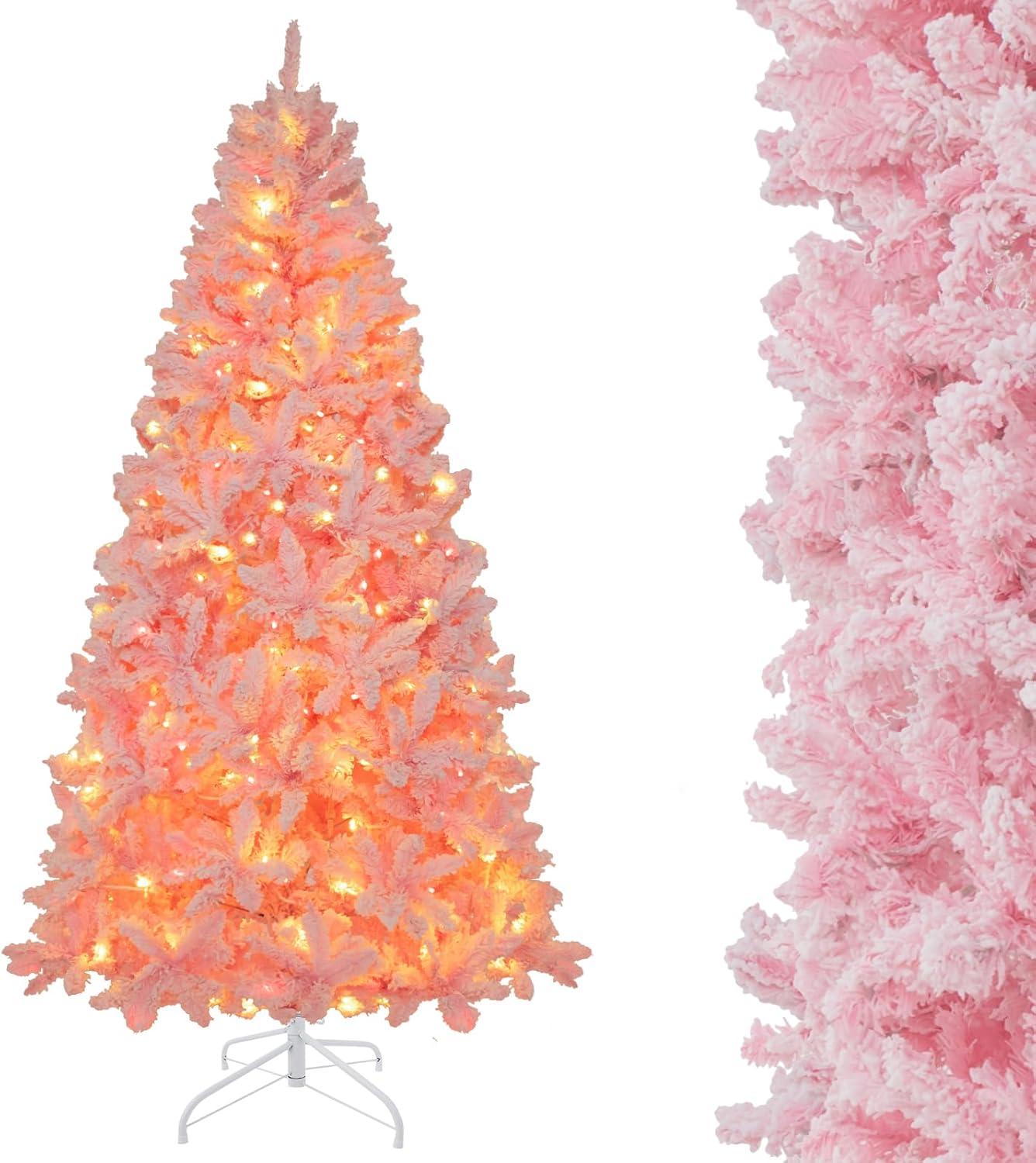 Elevate your holidays with our pre-lit pink snow flocked artificial Christmas tree—a charming, low-hassle centerpiece for any indoor space!