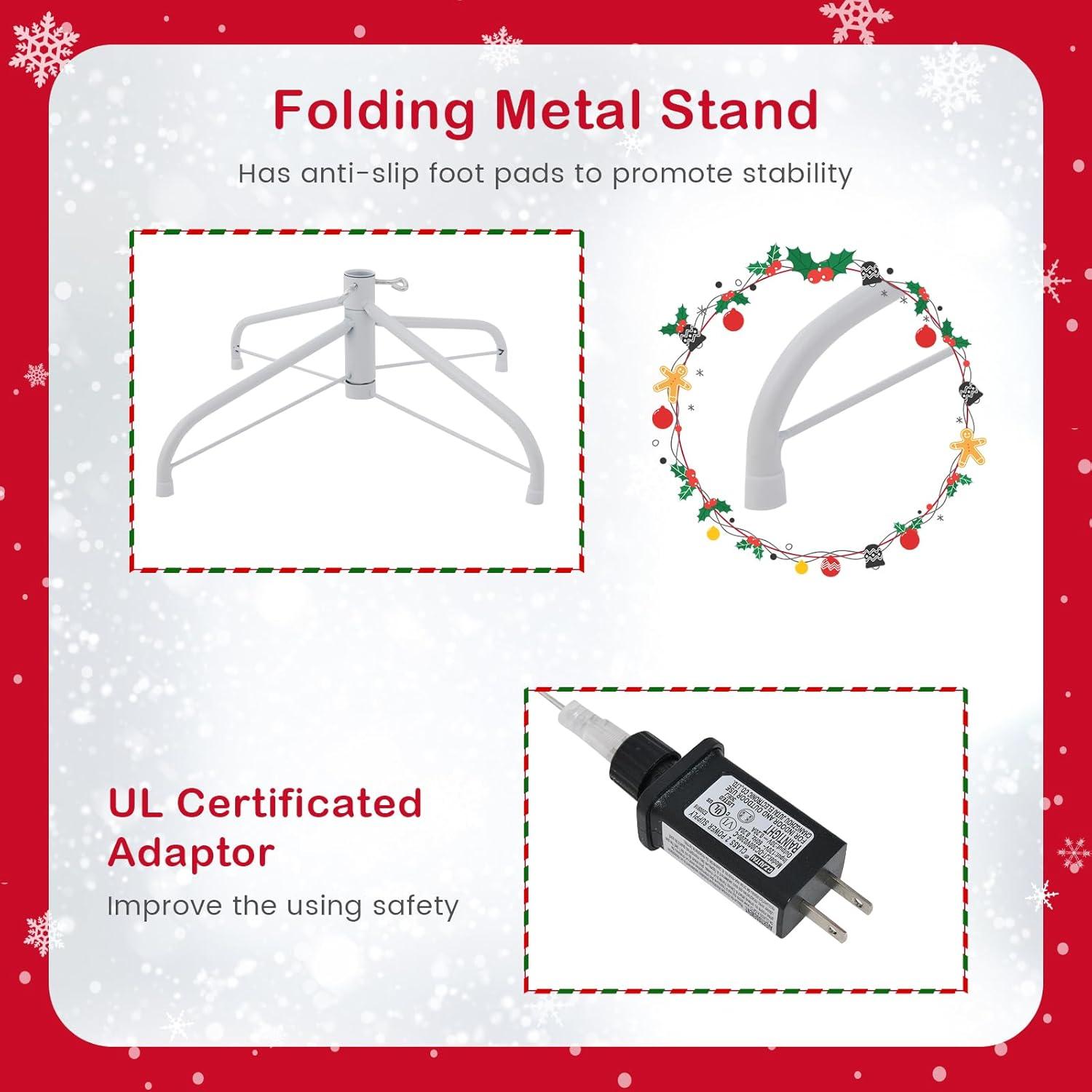 This kid-safe,pet-friendly artificial Xmas tree skips real tree troubles (no needle drop, no watering) and uses flame-retardant,scent-free PVC for safety.Its pre-installed low-voltage LED lights (8 dynamic modes) let you switch from cozy glows to party-ready flashes, while the anti-slip base keeps it steady.