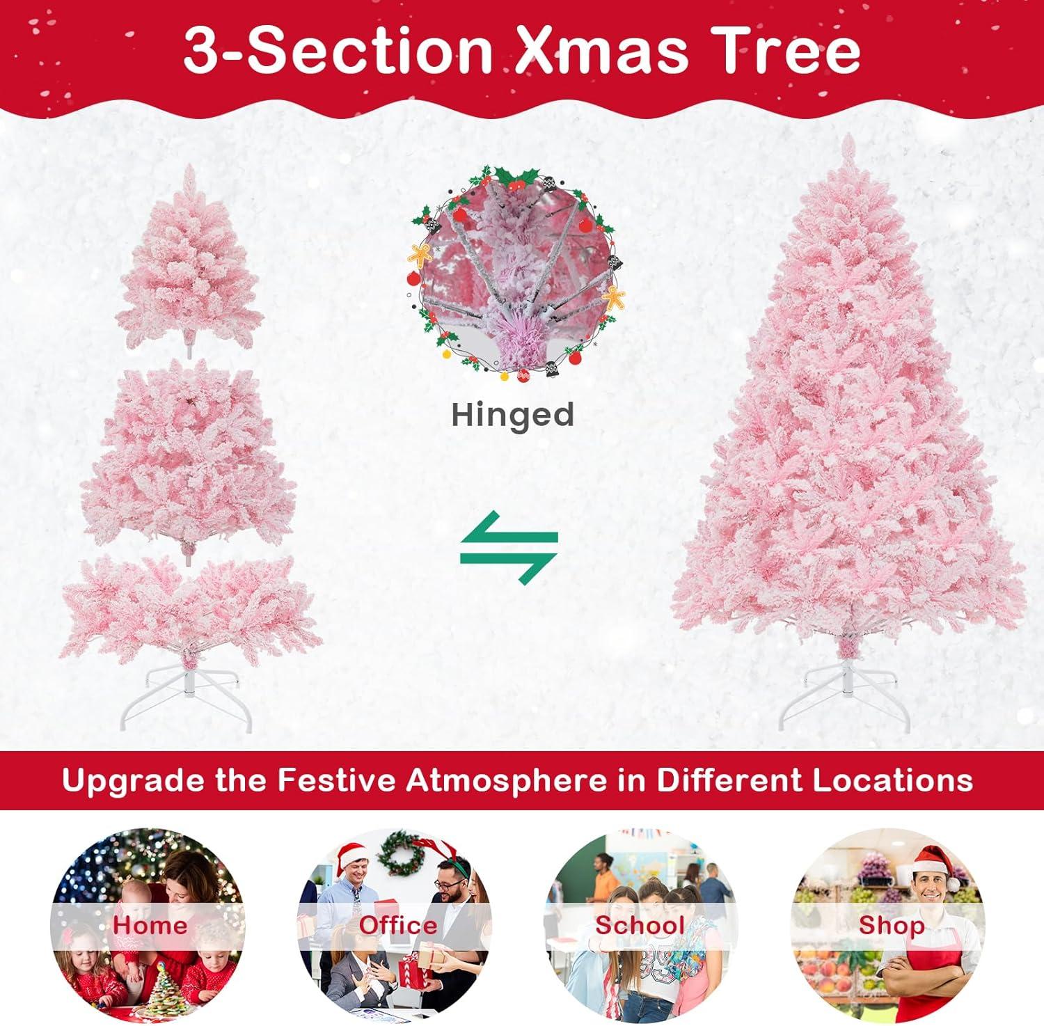 With a hinged structure for quick setup and a oldable design for space-saving storage, it’s perfect for homes, offices, or holiday parties. Plus, its vibrant pink snow-flocked look makes it a lovely Christmas gift tree —bringing long-lasting festive cheer with minimal effort!
