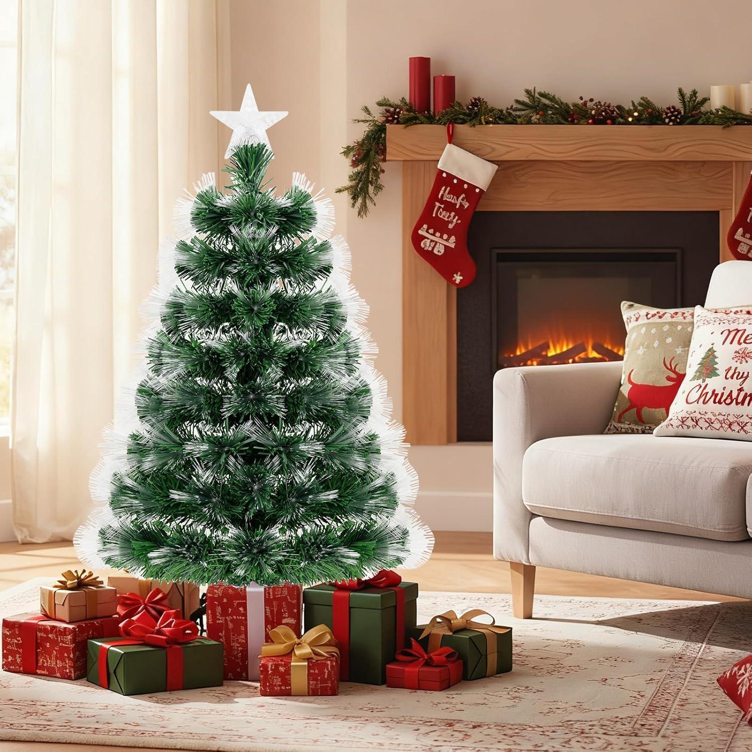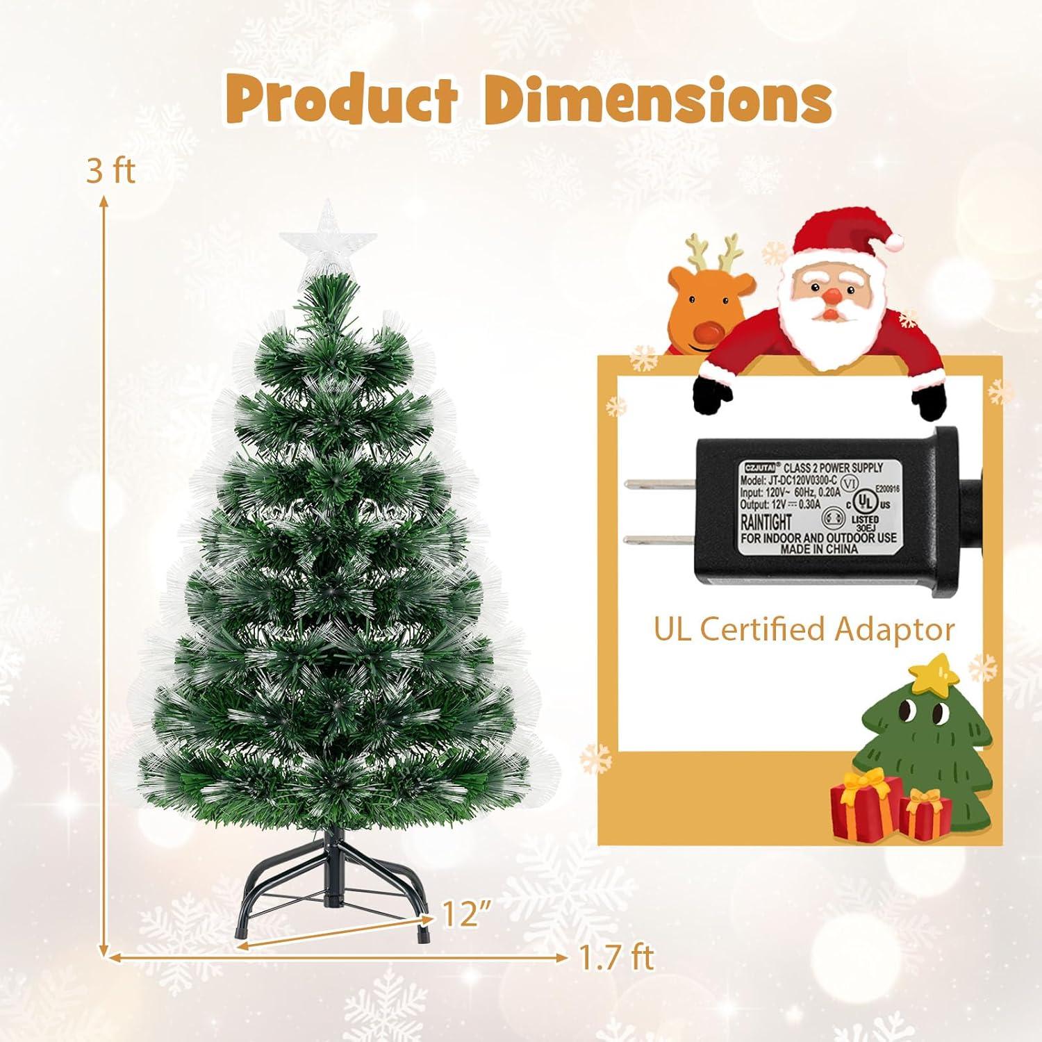 Bring the magical festive spirit indoors with this 3ft pre-lit fiber optic Christmas tree—a versatile artificial Xmas tree and lighted holiday decoration!