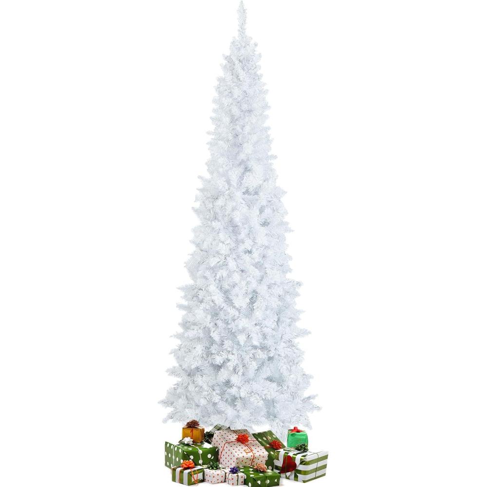 With a tool-free hinged structure (and included fluffing gloves), assembly is easy; its 3-section split design and foldable metal base enable space-saving storage. The sturdy base keeps the 7ft artificial Christmas tree stable, while the slim pencil shape fits small corners. Paired with a certificated adapter for safe use, this slim pencil Christmas tree blends style and practicality—ideal for bringing festive charm to any indoor winter occasion.
