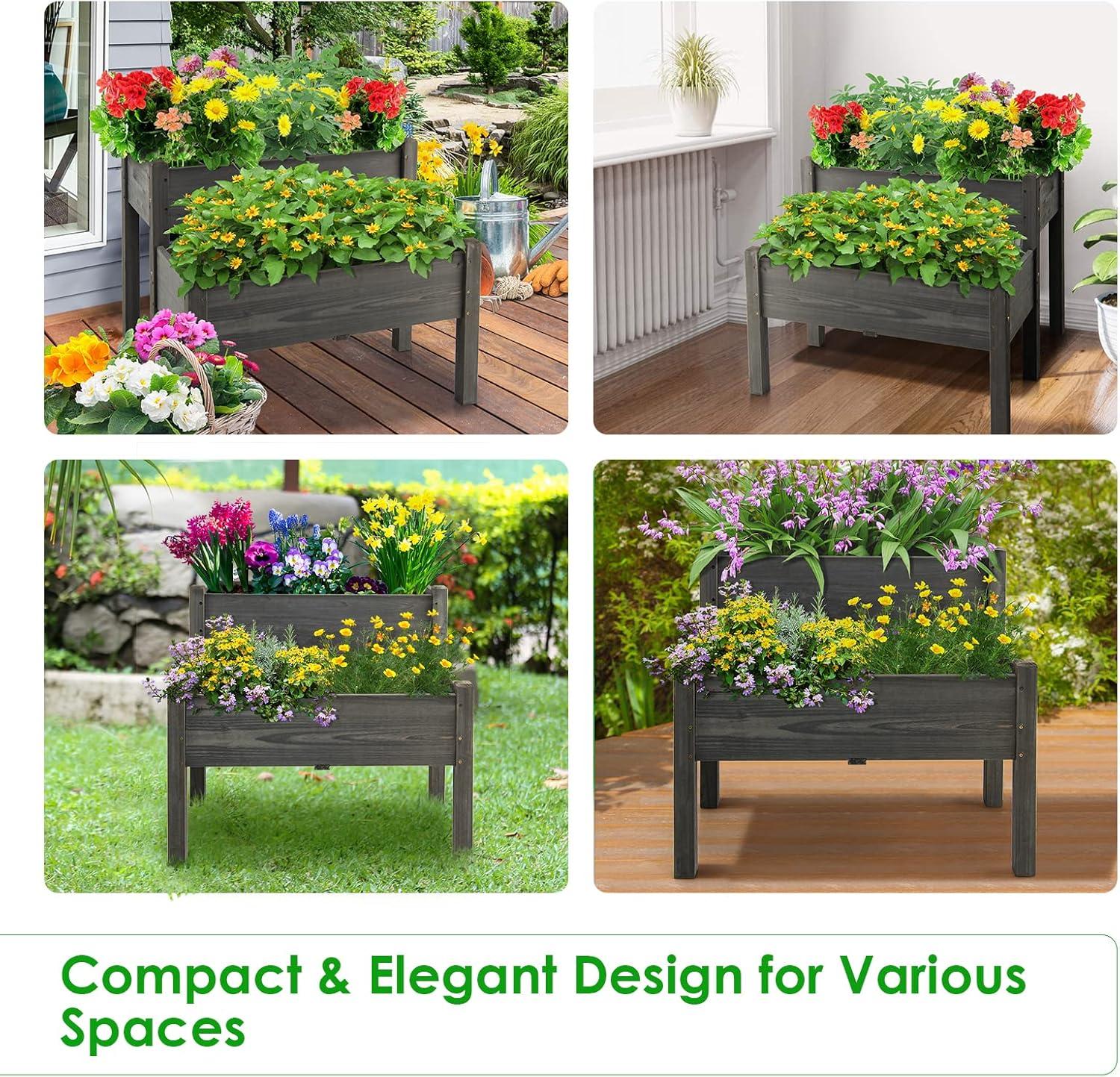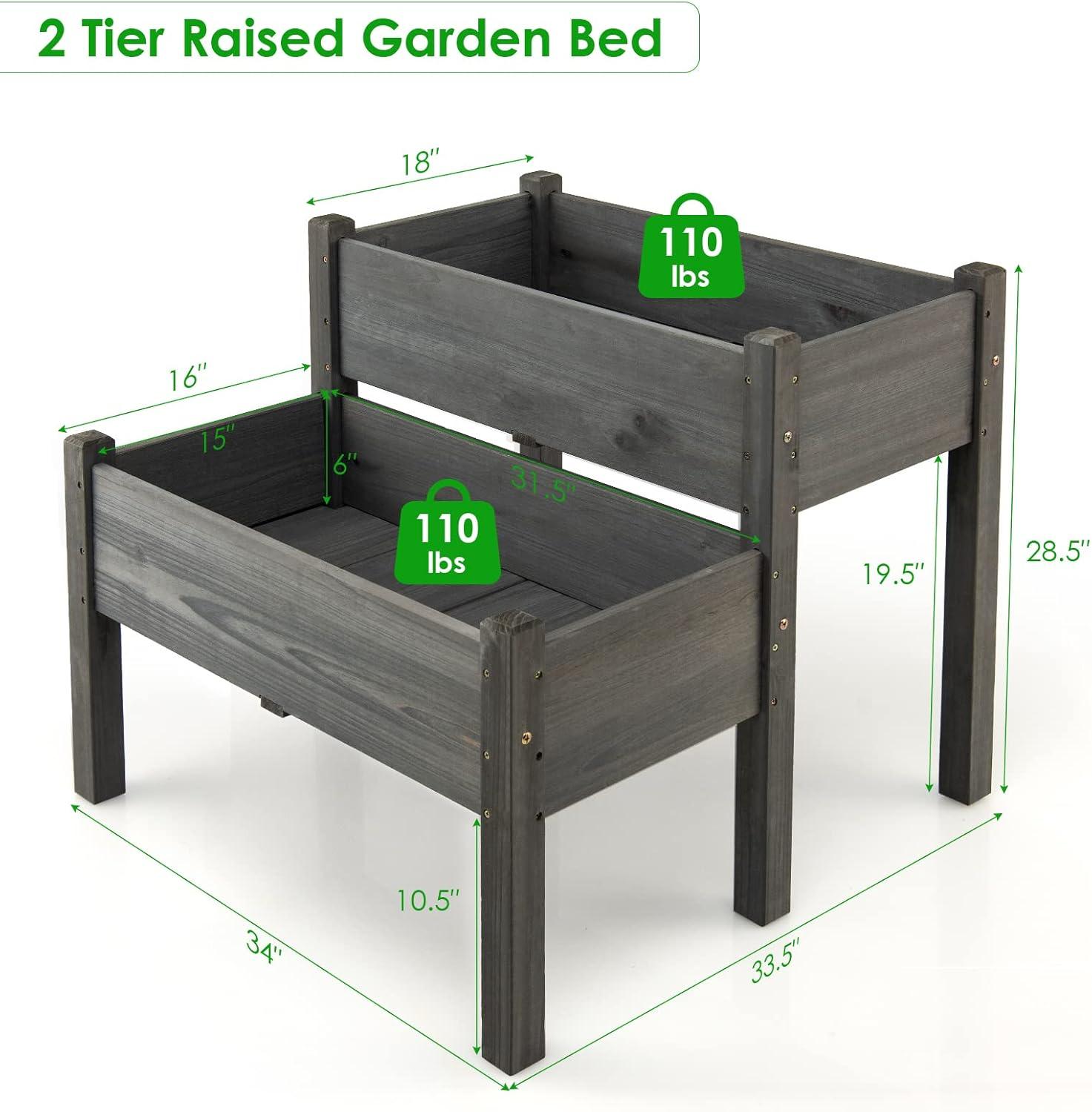 Handcrafted from natural fir wood, this raised garden planter bed offers superior stability and warp resistance, ensuring worry-free long-term use. Each tier has a planting space of 31.5'' x 15'' x 6.5'', providing plenty of room for vegetables, fruits and flowers to grow. The bottom of the planter bed is designed with practical drainage holes to efficiently drain excess water. The open bottom design skillfully avoids the problem of stagnant water and creates a healthy growing environment for plant roots. The natural look of this wooden garden planter bed blends perfectly with outdoor spaces such as gardens, decks, balconies and porches, adding a touch of cozy and natural beauty.