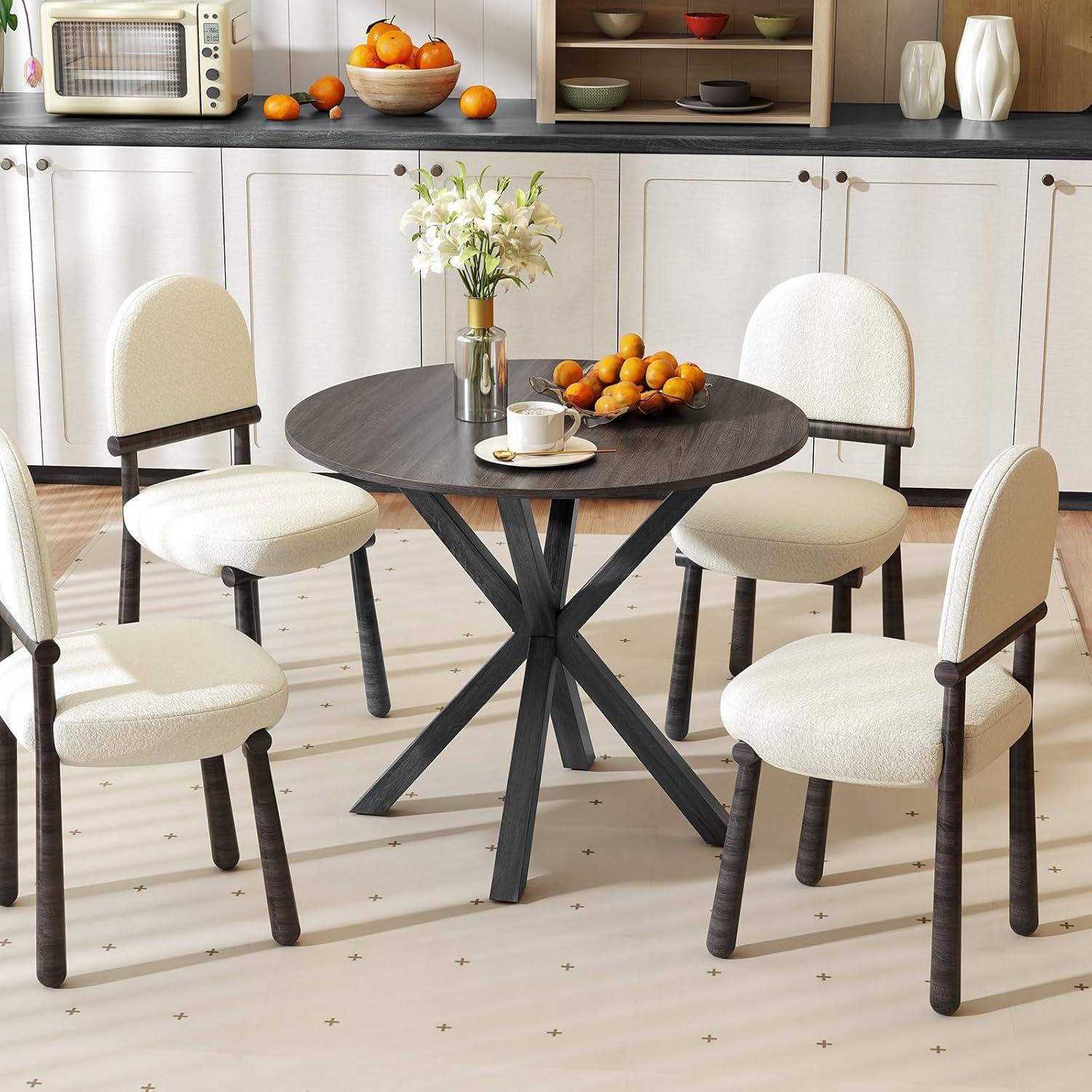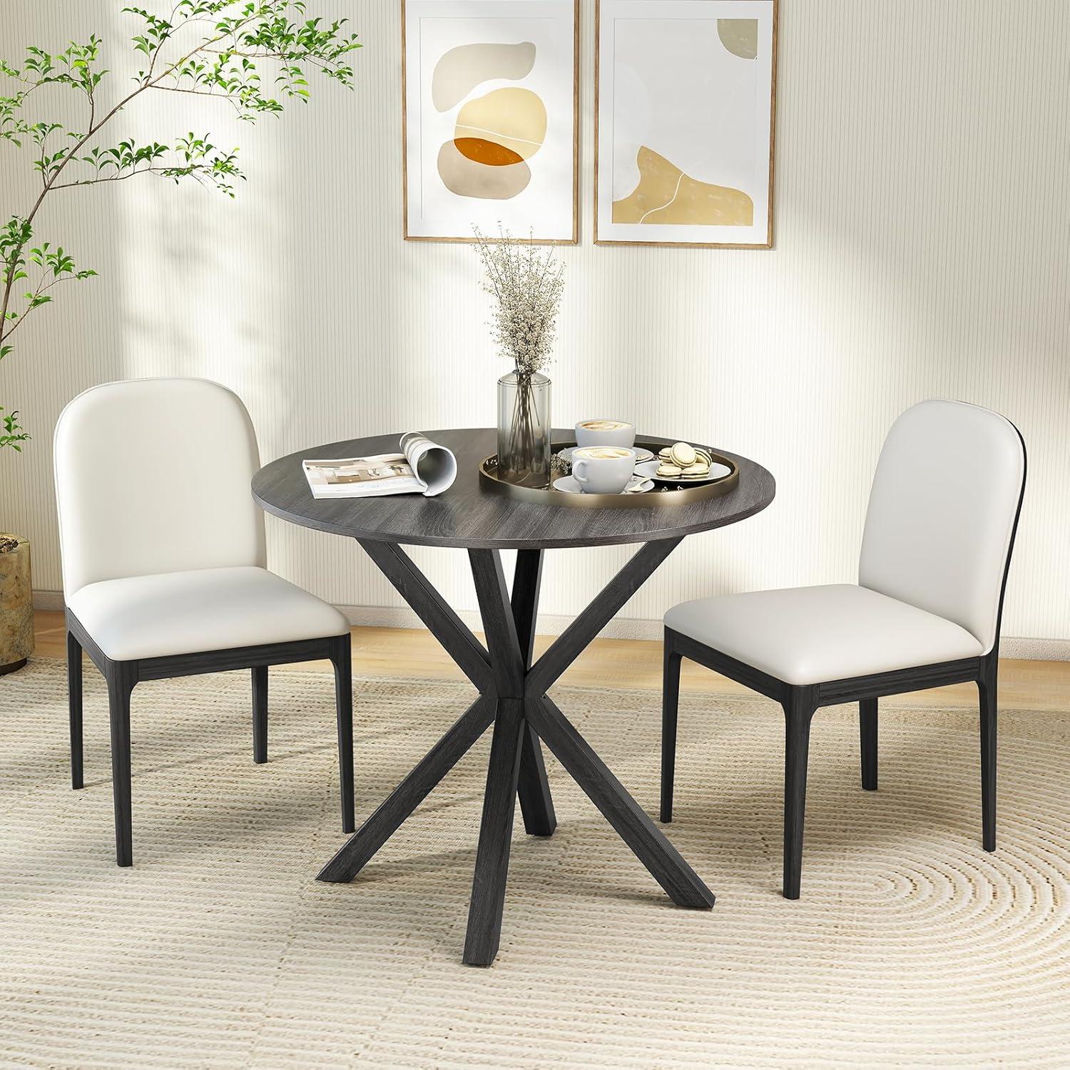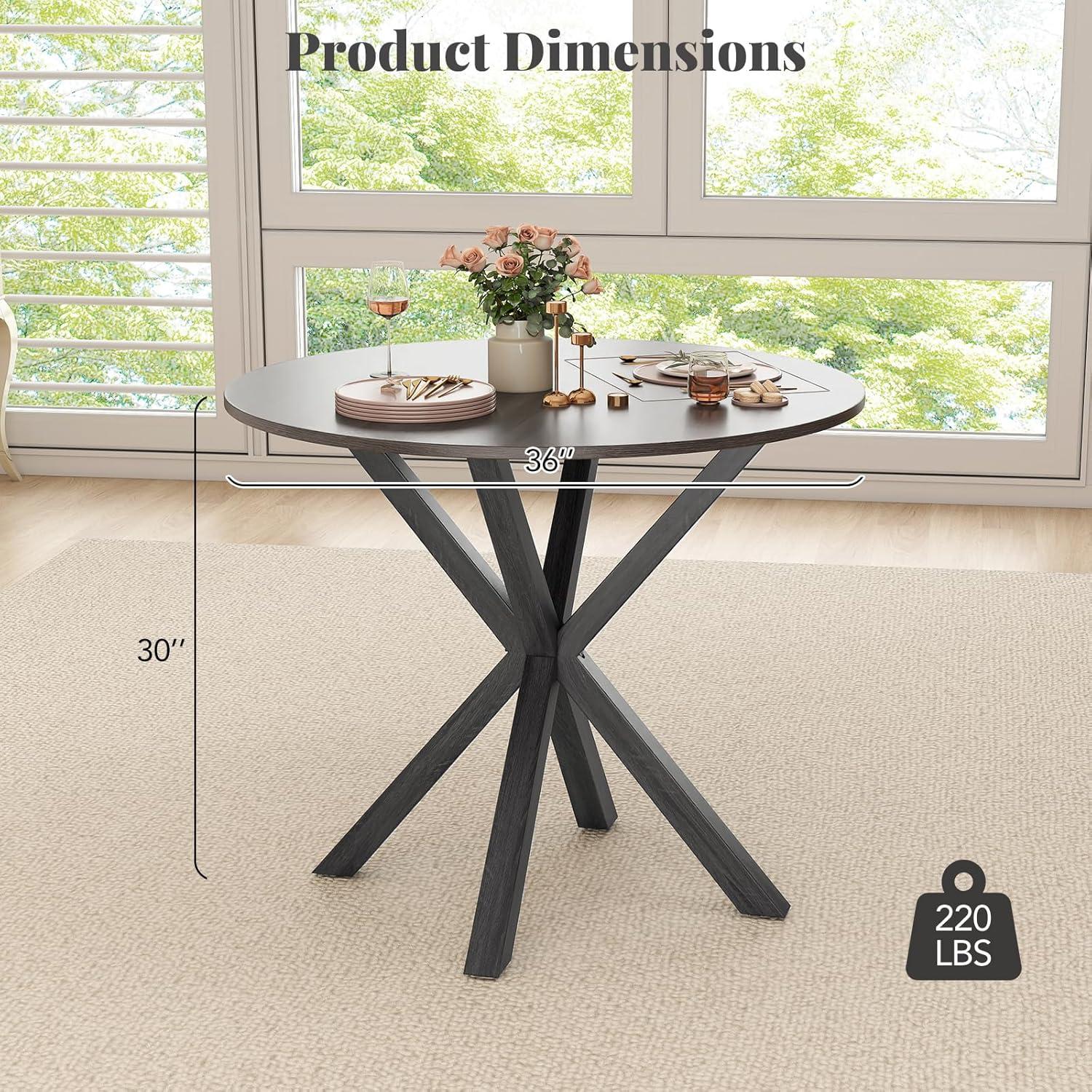 Modern Small Round Table: Our 36” circular dining table can accommodate 2 to 4 guests comfortably, suit perfectly for intimate meals with family or friends. The 36-inch round tabletop is large enough to place sets of tableware, foods, decorations and so on.