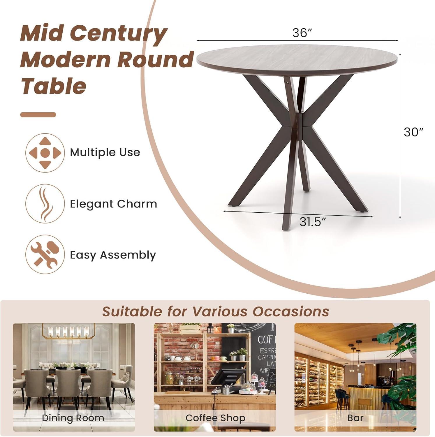 Modern Small Round Table: Our 36” circular dining table can accommodate 2 to 4 guests comfortably, suit perfectly for intimate meals with family or friends. The 36-inch round tabletop is large enough to place sets of tableware, foods, decorations and so on.