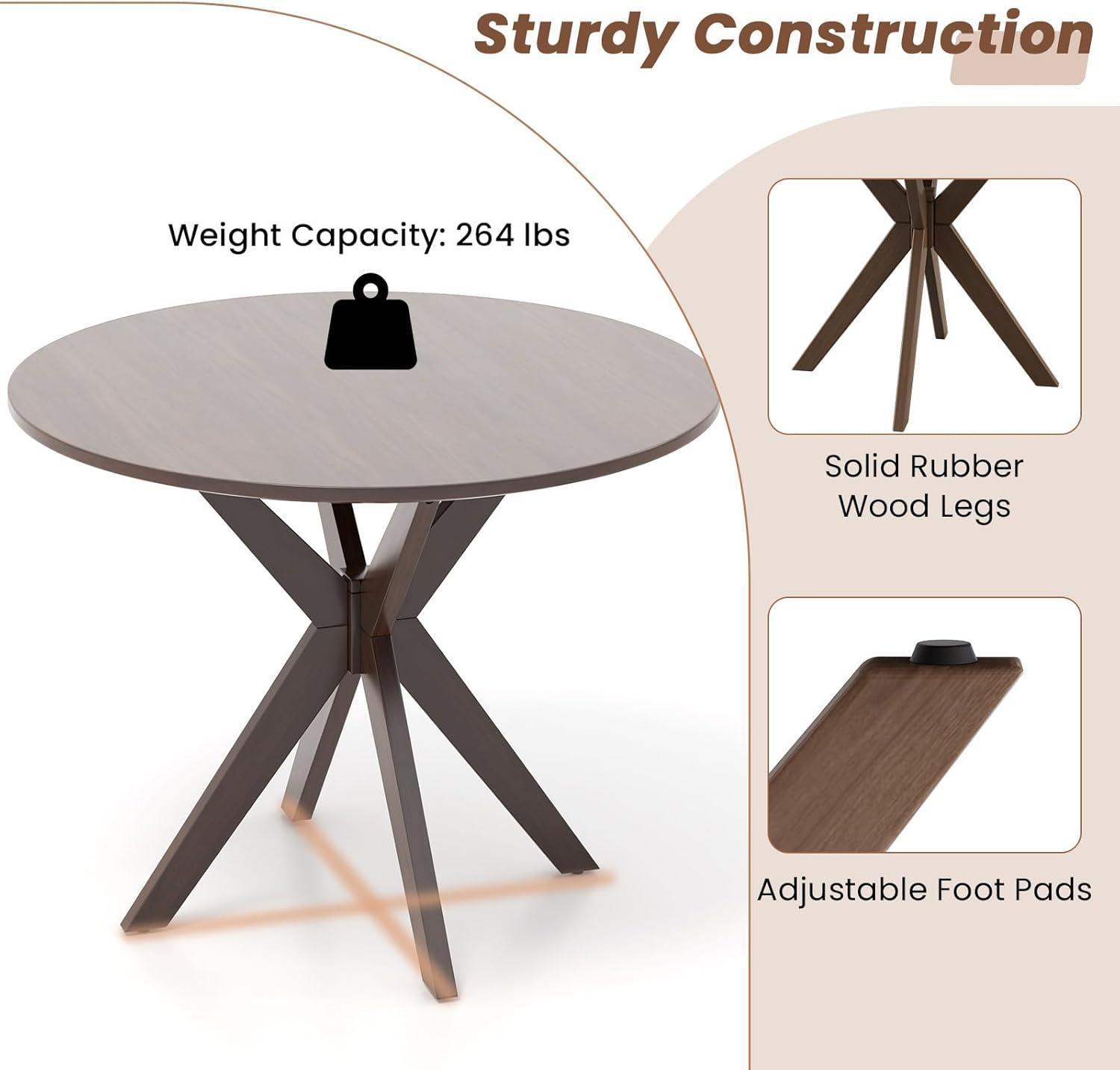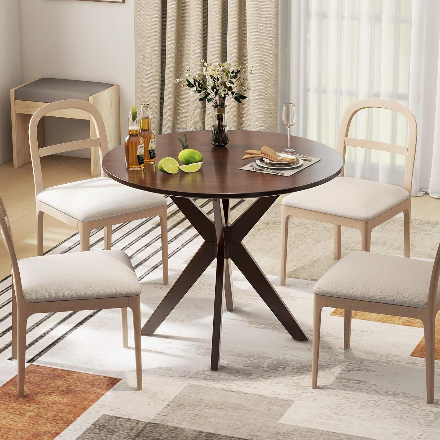 Round Dining Table, 36” Vintage Coffee Table for 2-4, Mid Century Farmhouse Table with Pedestal Base & Solid Wood Legs, Walnut Wood Kitchen Table for Small Space, Home, Office, Living Room(Walnut)