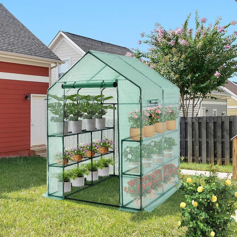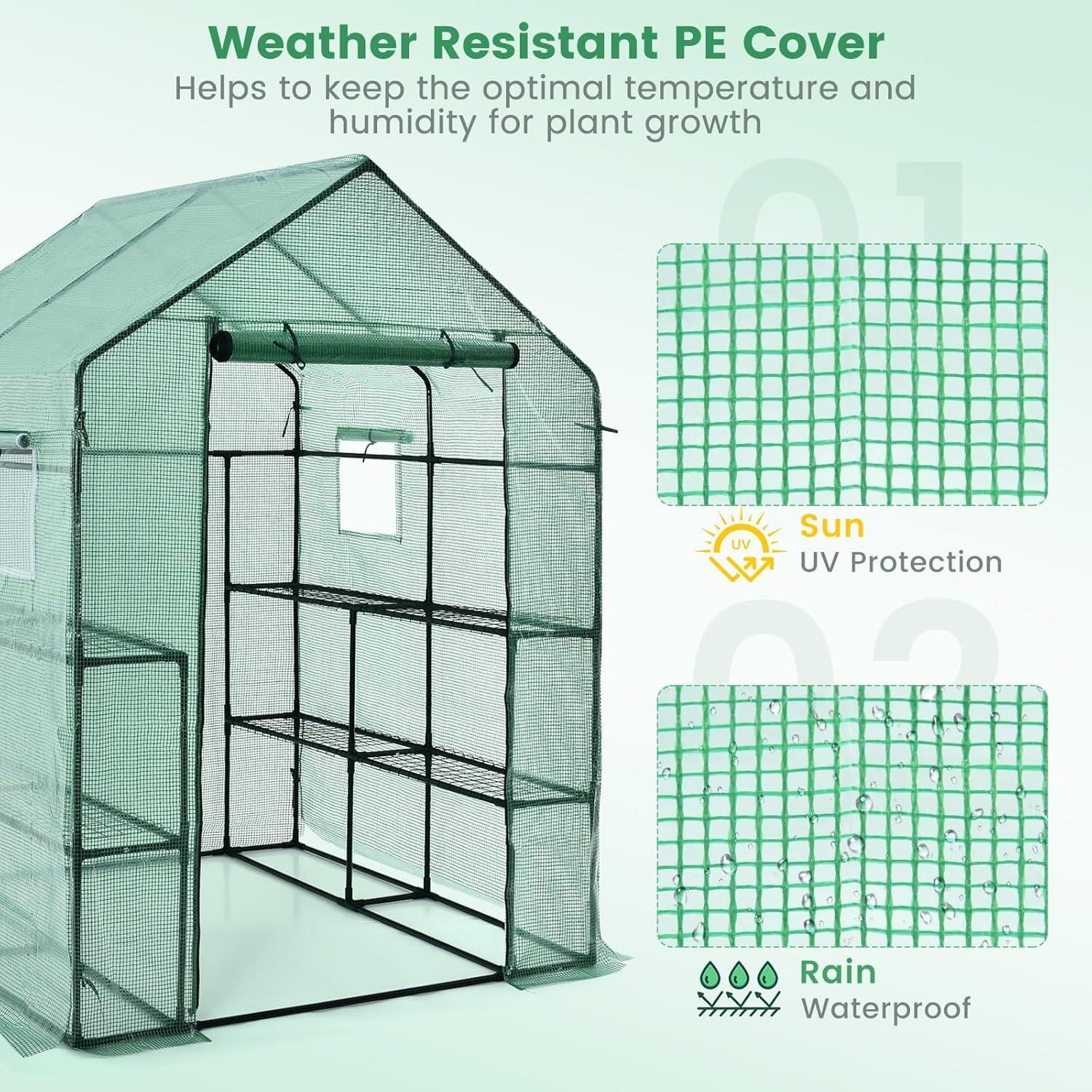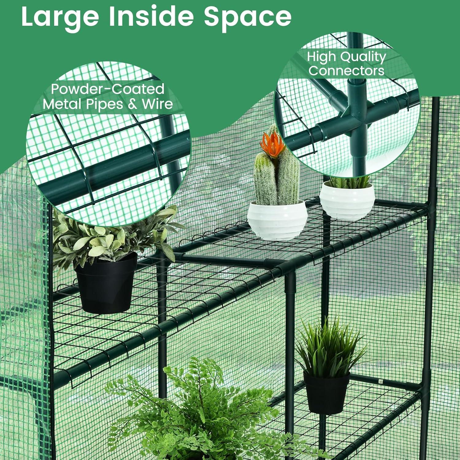 Create a flourishing sanctuary for your plants with our Small Greenhouse, crafted with premium steel and a waterproof PE cover. This high-quality structure provides a comfortable growth environment, even in the coldest of winters, making it perfect for outdoor use. Stay worry-free during strong winds with the added stability of 4 long windproof ropes and hooks, while the option to cover the bottom with sand or stones provides extra peace of mind. Convenient access is guaranteed through the zipper roll-up door, and the side mesh windows not only promote airflow but also protect your plants from pests. In just minutes, assemble this hassle-free greenhouse without any tools. Elevate your gardening experience and cultivate your own garden oasis with the Small Greenhouse.