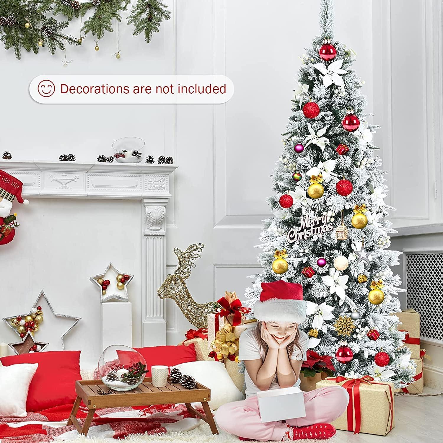 Bring Festive Feel to Your Home: Our artificial Christmas tree is designed in the shape of real pine tree with white frost and snow-coated, which can create an intense festive atmosphere. The branches can be decorated with exquisite ornaments to create holiday feel, suitable for most occasions, such as Christmas, weddings, winter theme parties, and so on.
