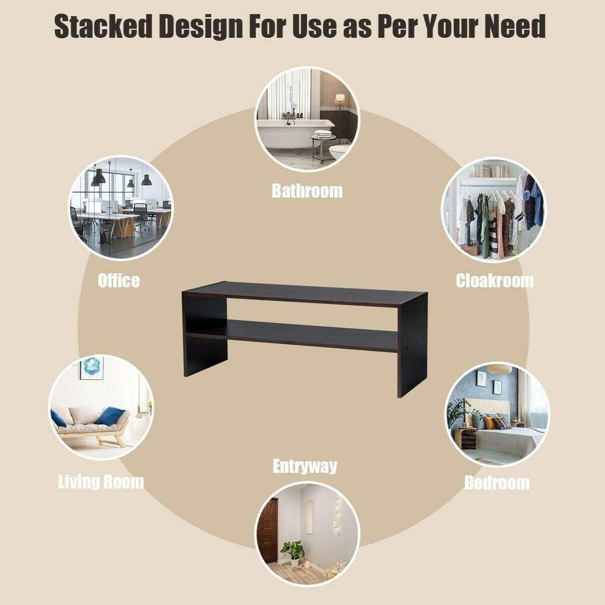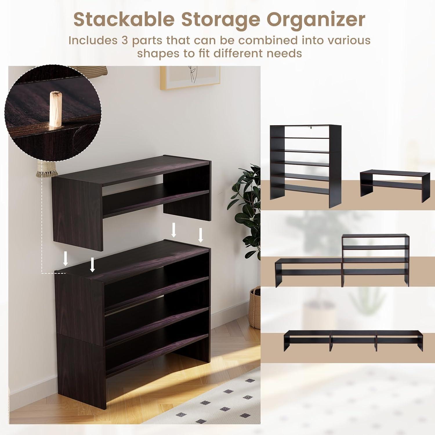 Versatile Stackable Design: Our shoe storage organizer can be arranged into 4 combination methods with 3 parts of 2-tier racks. The stackable design allows you to set freely according to your personal needs, making it perfectly fit into your space