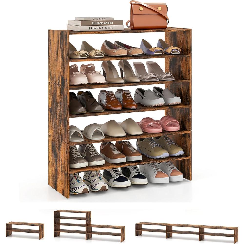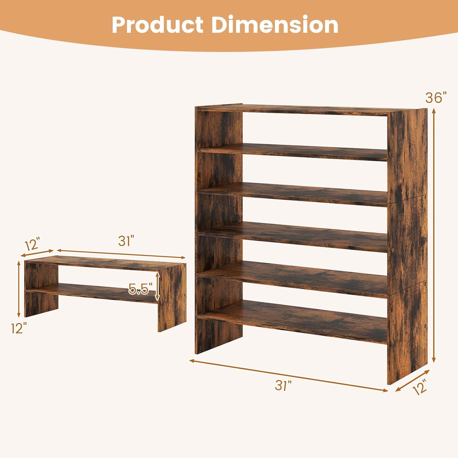 imageStackable 6Tier Shoe Rack 31 Wide Freestanding Shoe Stand with AntiTipping Device SpaceSaving Shoe Storage for 18 Pairs 3in1 Shoe Shelf Organizer for Closet Entryway Hallway WhiteRustic Brown