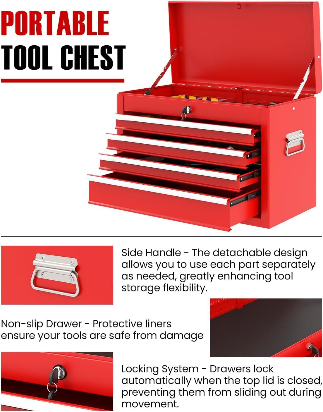 Secure Locking System: The automatic locking mechanism secures the drawers as soon as the top lid is closed, preventing accidental openings. Keep your tools safe and secure with a keyed lock system, providing peace of mind against theft or unauthorized access