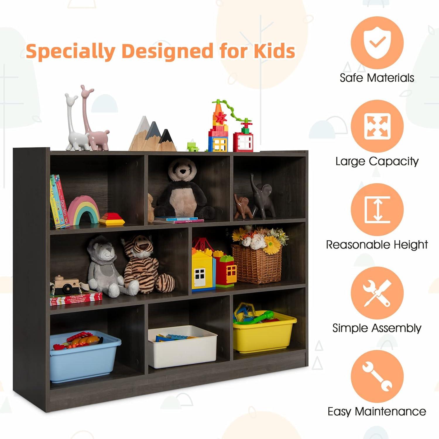 imageToys Storage Organizer 3Tier Cube Bookcase with 8 Compartments Wooden Display Cabinet for Kids Room Nursery Bedroom Classroom YellowGrey