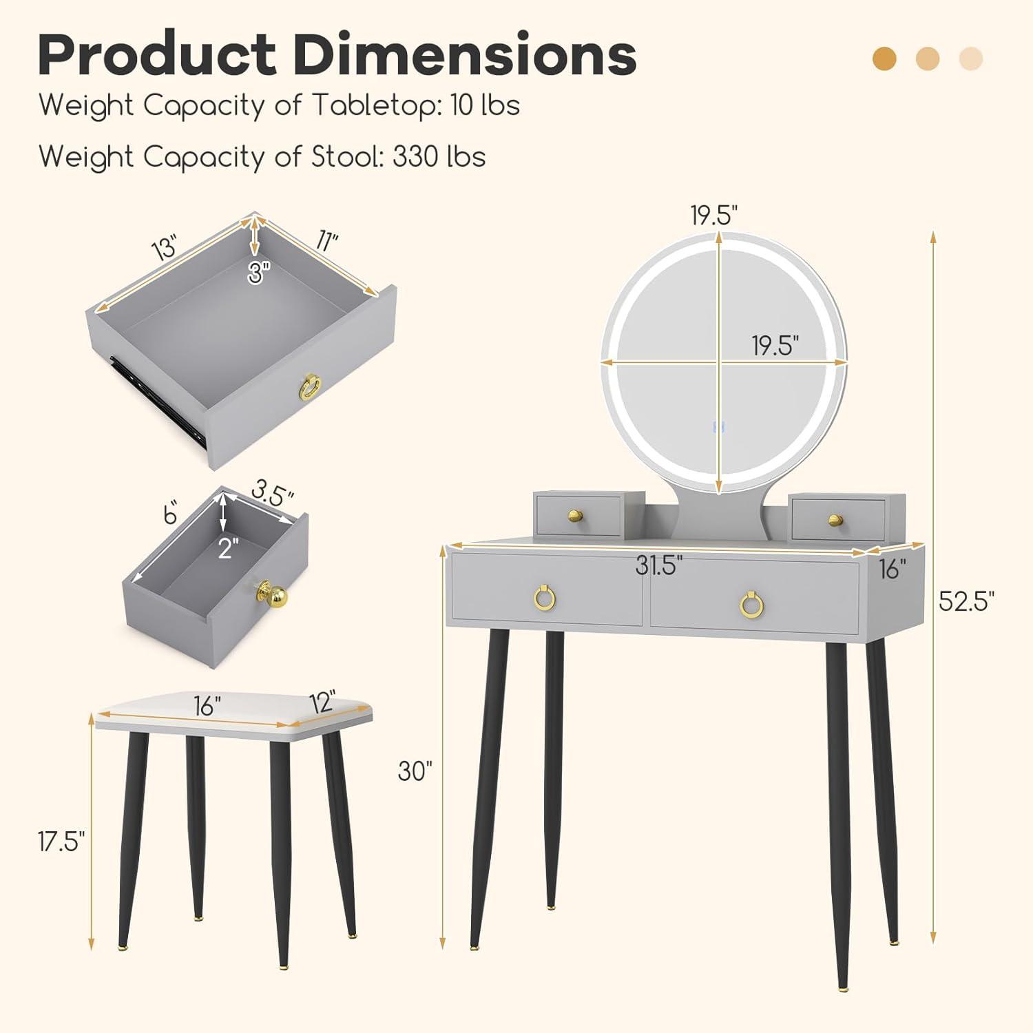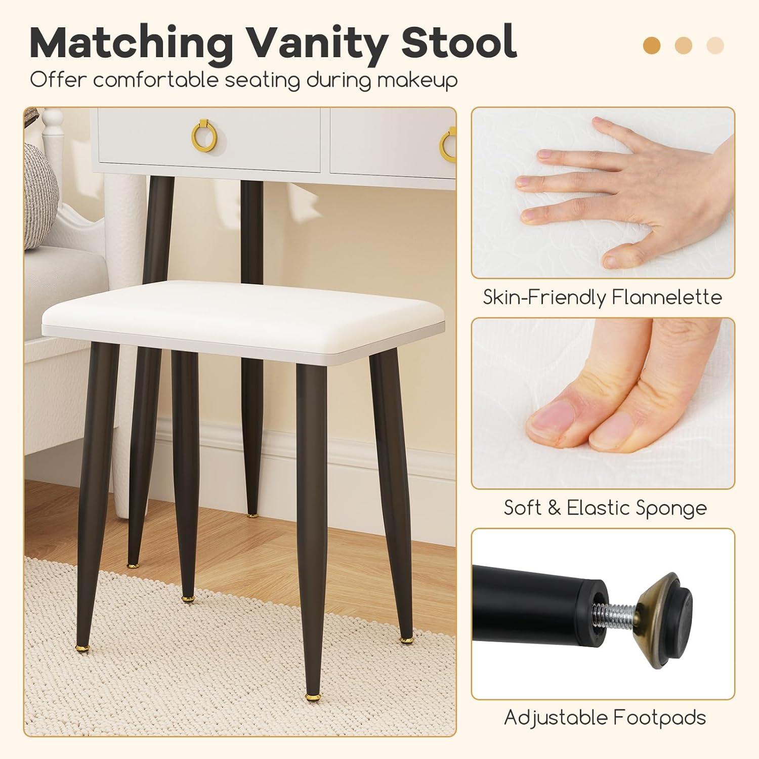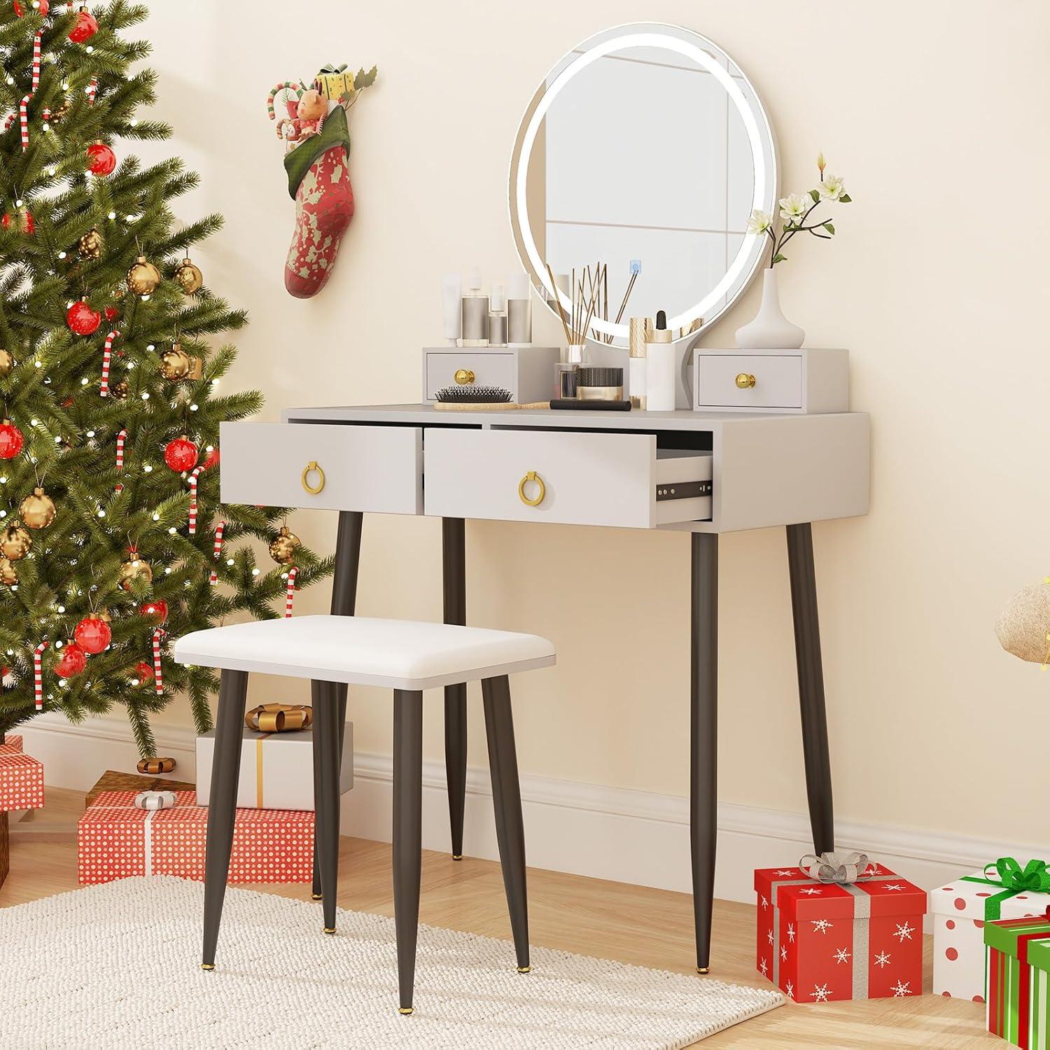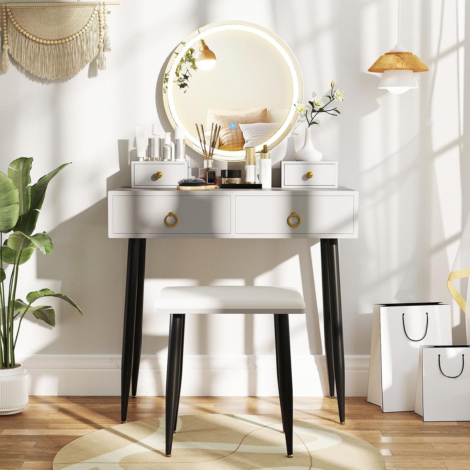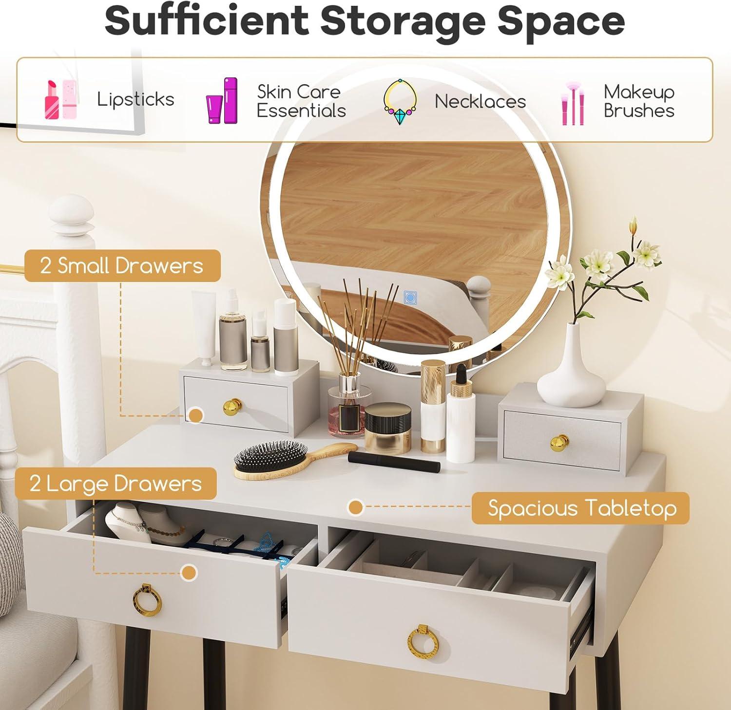 Glam squad, assemble! This pint-size powerhouse packs a 31.5” footprint and a full-size wow factor. Tap the mirror to cycle 3 selfie-worthy LED tones, sink into the cloud-soft flannelette stool, and glide open two small plus two large drawers that swallow palettes, serums, and secrets. An anti-tip kit keeps the whole station rock-steady while you contour. Small bedroom? Studio nook? Problem solved—big style, zero clutter. Snag it now and turn every morning into a five-minute spa moment.