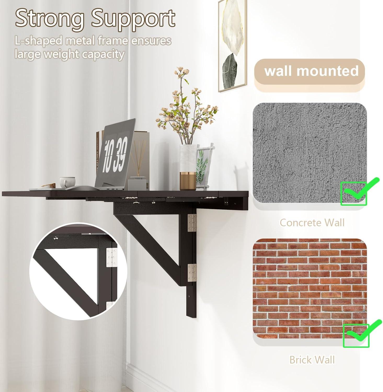 Advanced Folding Mechanism: Enjoy unmatched versatility with our wall-mounted folding desk, featuring an optimized folding system. Adjust your workspace to your needs—fully extend it for a spacious 31.5″ x 23.5″ surface, fold it halfway for compact use, or tuck it flat against the wall to save space. Perfect as a fold down desk wall mounted for small spaces