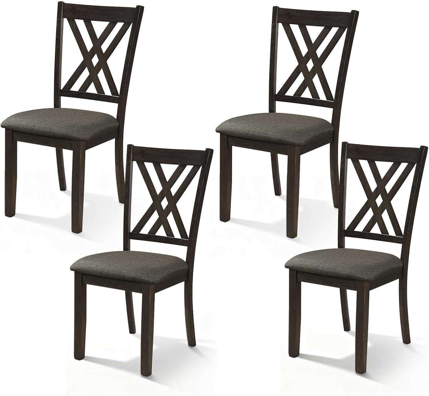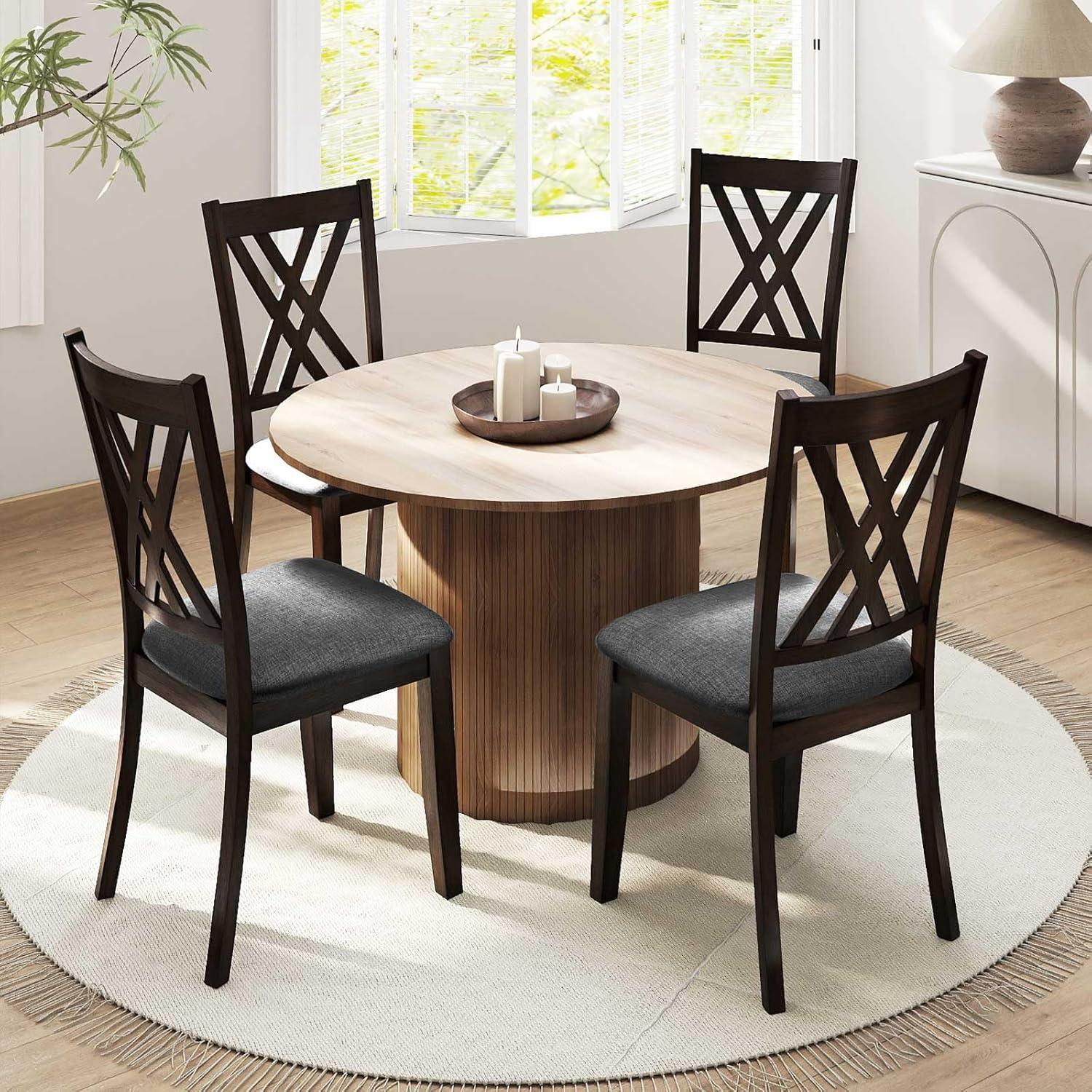 Wood Dining Chairs Set of 2, Wooden Kitchen Side Chairs with Rubber Wood Legs, Padded Seat, Double X-Shaped Back, Farmhouse Dining Chairs for Dining Room, Living Room(Black+grey)