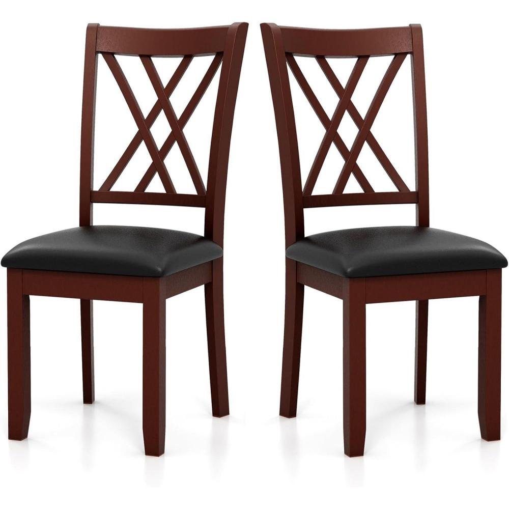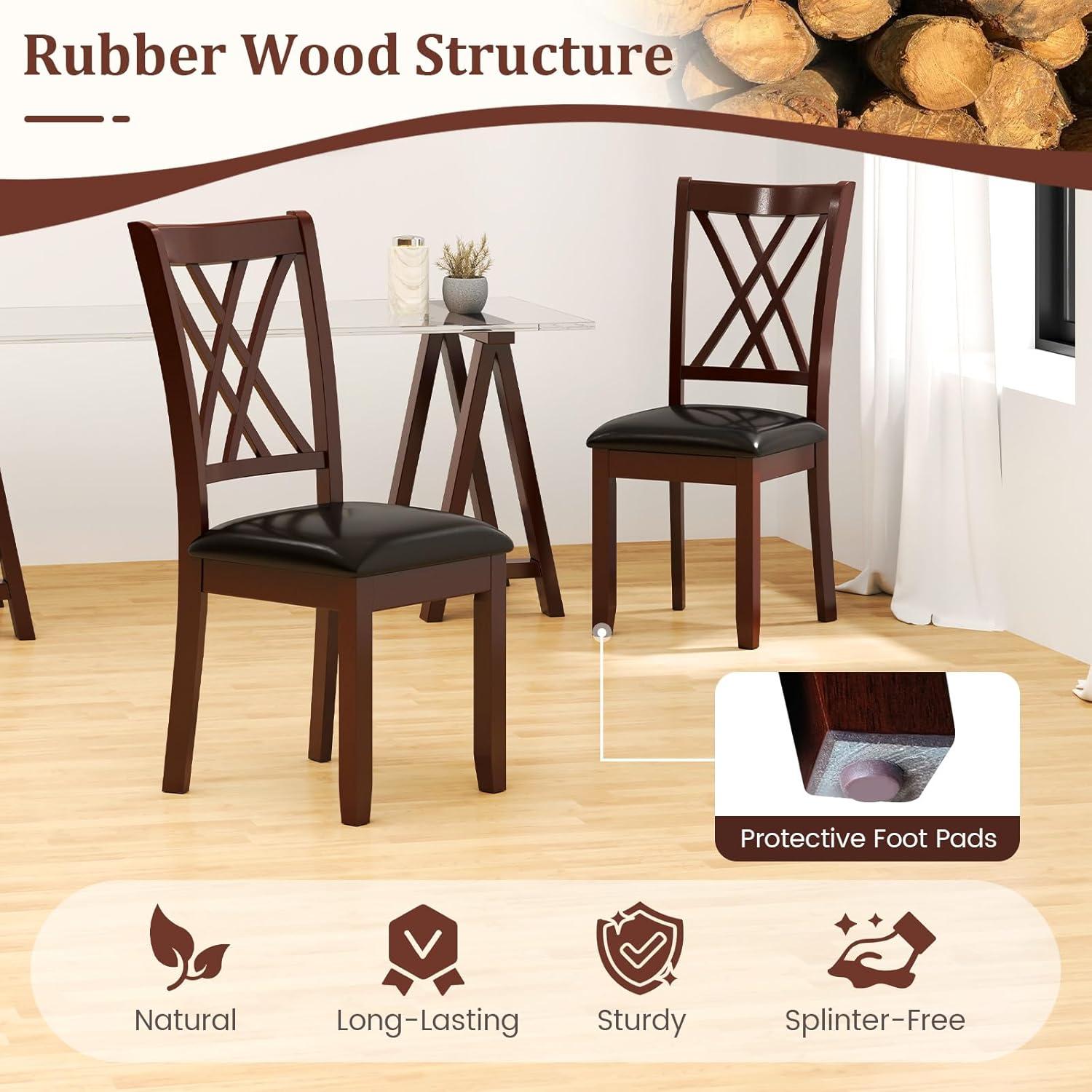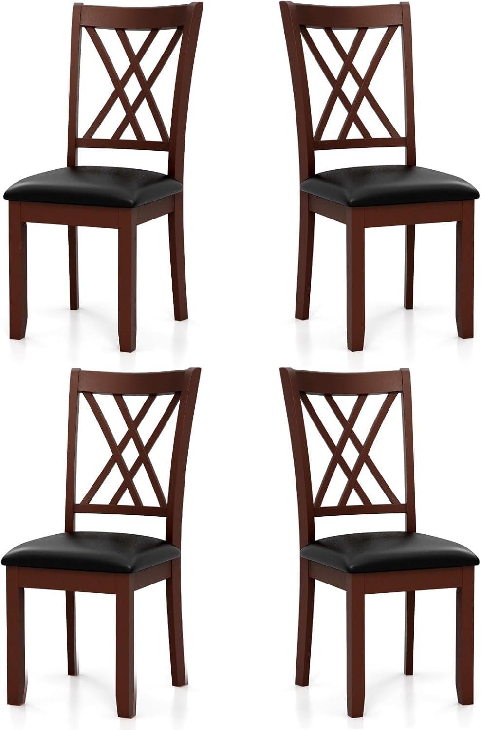 Crafted from solid wood and wrapped in supple faux leather, each seat offers long-lasting support and an easy-wipe surface for daily life. Gentle padding cushions every meal, while the curved backrest follows the natural line of the spine to reduce fatigue. Subtle X-shaped framing adds visual lightness without sacrificing strength, and discreet foot pads keep floors pristine. Their quiet versatility suits kitchen nooks, open-plan dining rooms, cafés and bistros alike, lending warmth and order wherever people gather to eat, talk or rest a moment longer.