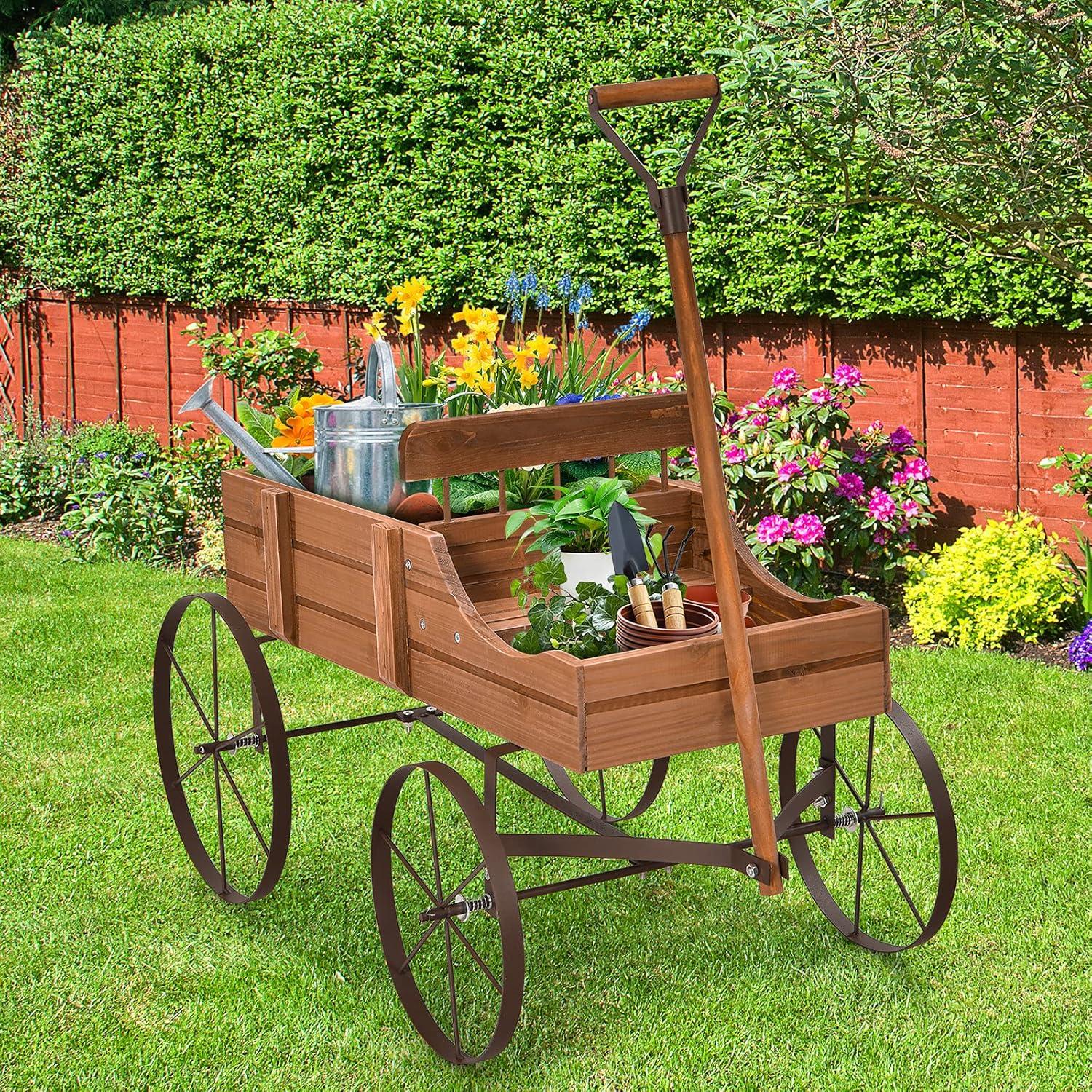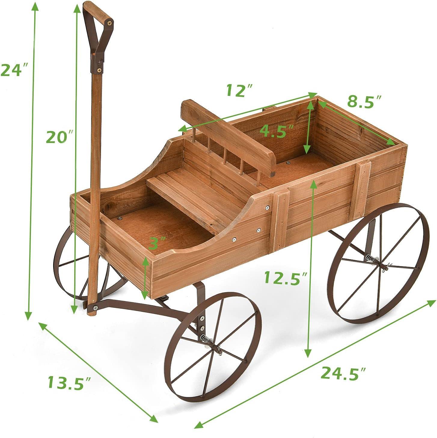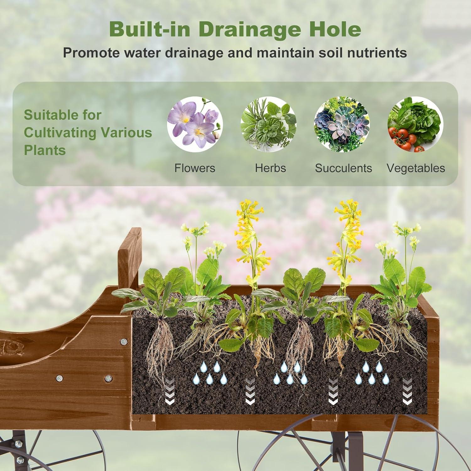 Easy Assembly & Proper Drainage: With detailed instruction and complete hardware, it’s easy to put the flower planter together. Featuring a built-in drainage hole, the wagon planter is designed to promote water drainage and maintain soil nutrients